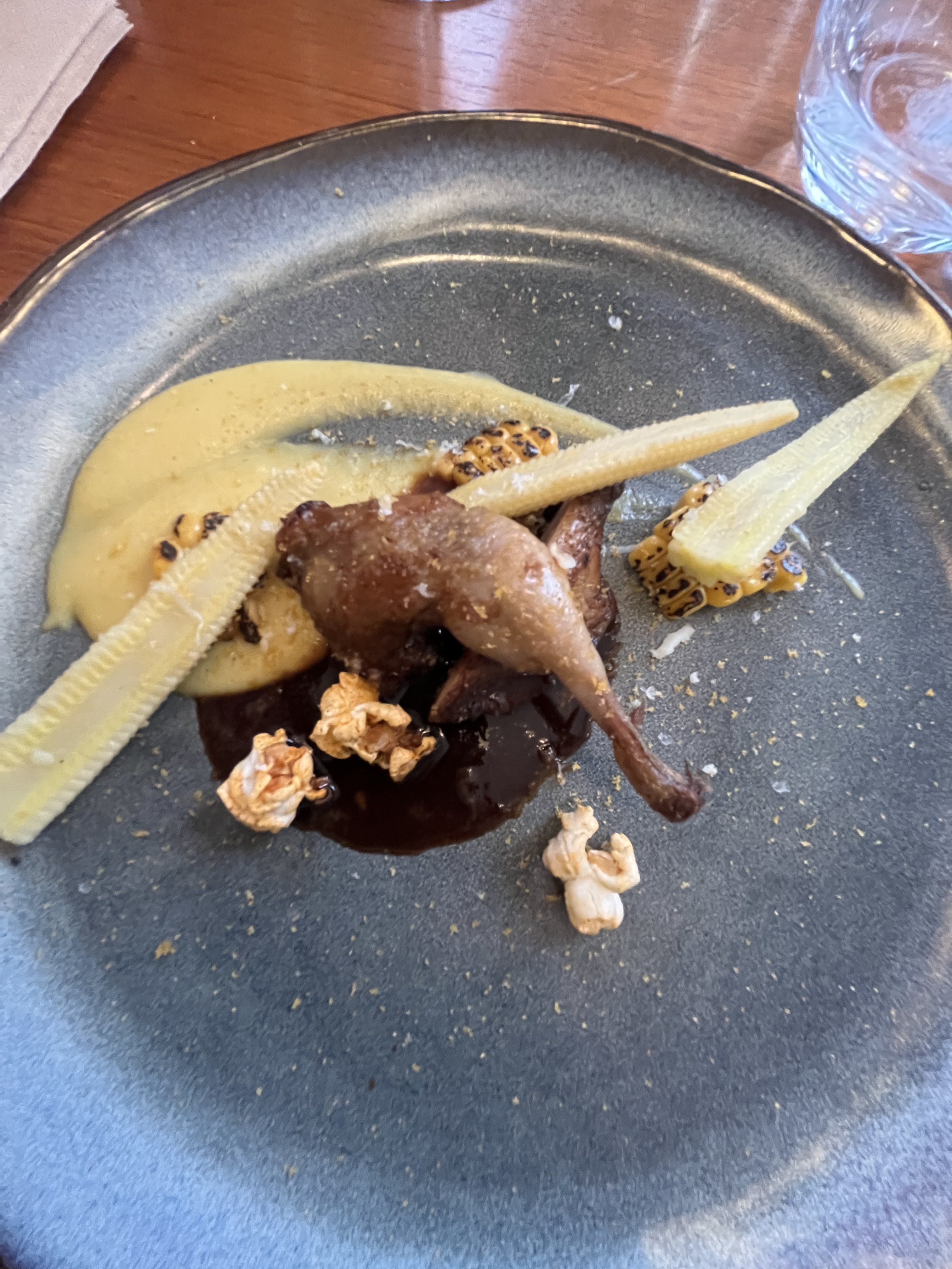 Entrée à base de caille, ridicule de part la petitesse des 2 morceaux perdus dans l'assiette. Pas de carte le soir de la fête des lumières, uniquement 2 menus, compréhensible mais impossible d'échanger l'entrée avec autre chose même de très simple pour 1 des 6 personnes. Service non efficace avec attente malgré que le restaurant ne soit pas complet.