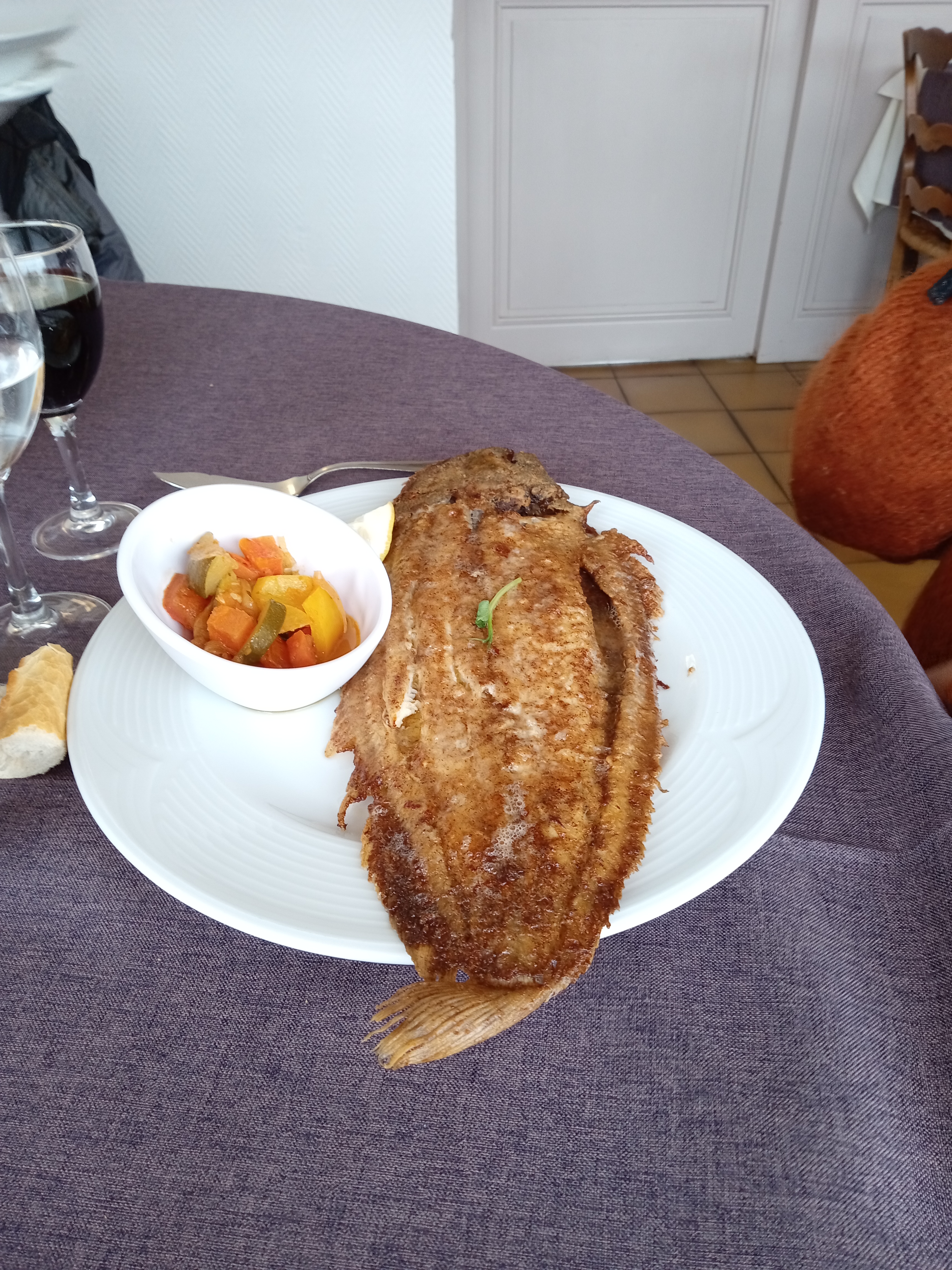 Tout était parfait. Très bon accueil. Rapidité de service. La qualité des plats. Nous avons pris une raie sauce aux câpres accompagné de riz au petits légumes. Café gourmand et tarte tatin délicieux. Seul bémol, nous étions exposés en plein soleil et pas de parasol disponible