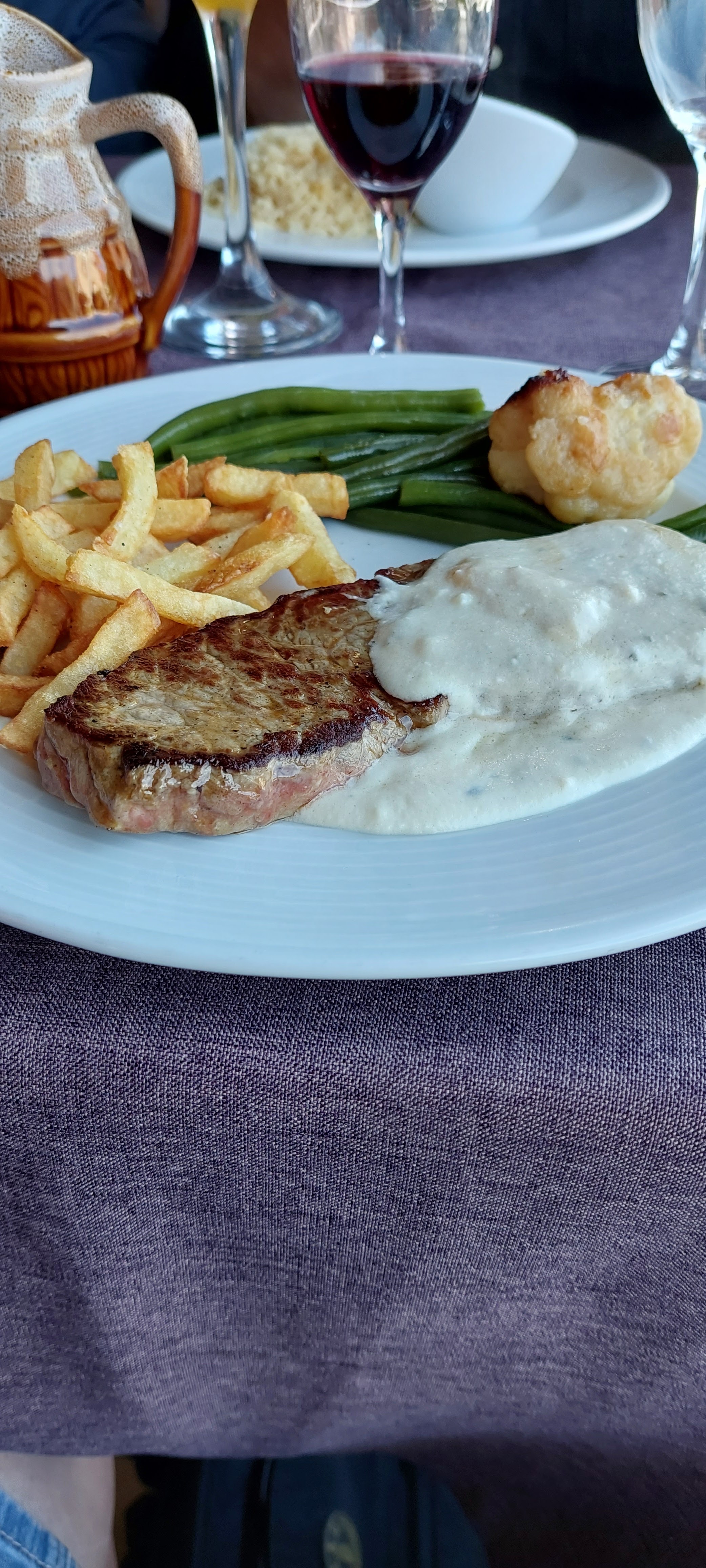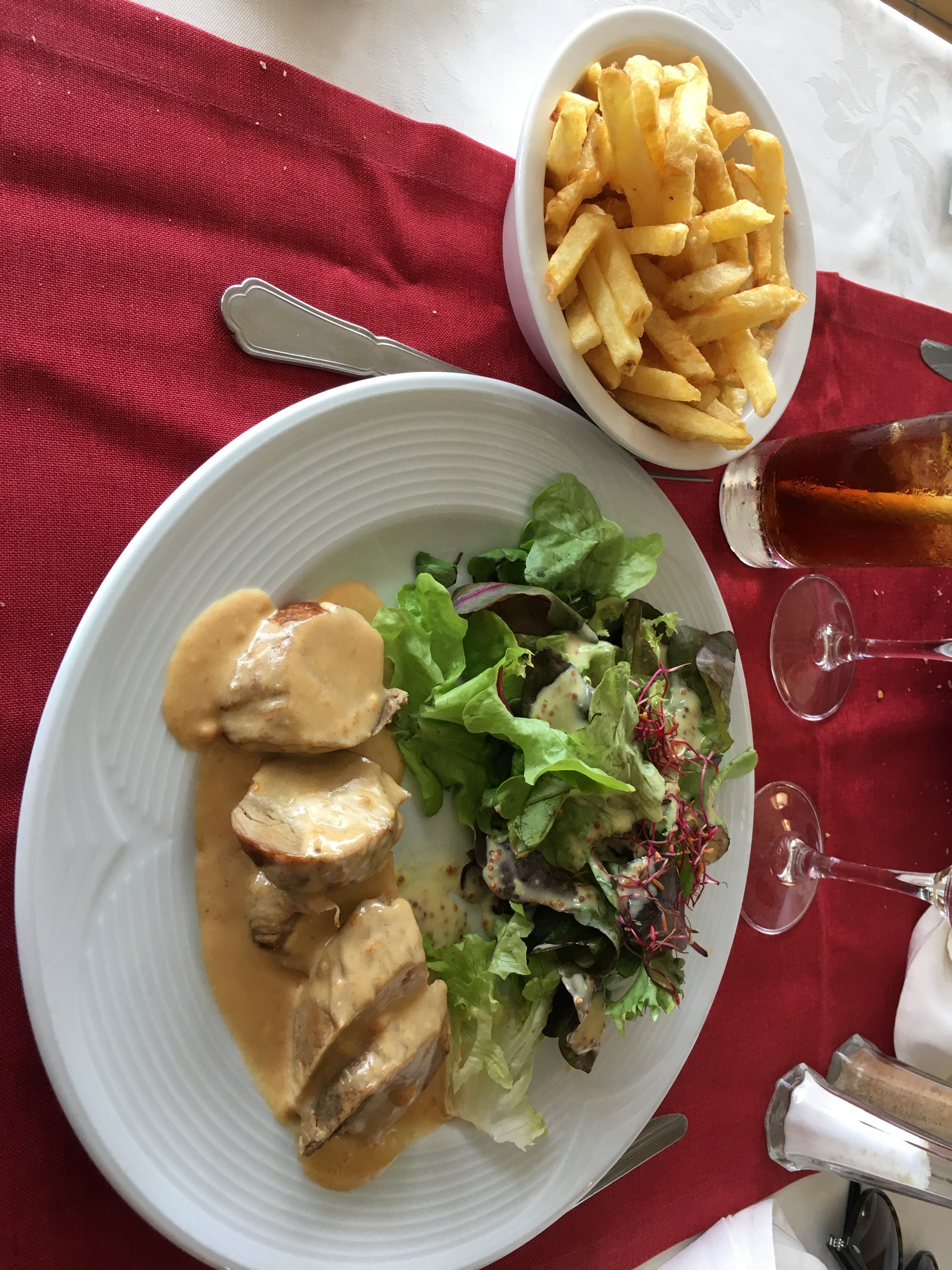 Un peu déçu sur la qualité des produits Le chef utilise à mon avis beaucoup le micro ondes Coquille de la Mer fromage fondu mais pas grillé et odeur de rance typique du fromage passé au micro ondes Les frites, un gros effort à faire Ou utiliser des surgelés à la rigueur si pas de metrise de la cuisson Cela évitera des frites noires et grasses Plateau de fromages très bon