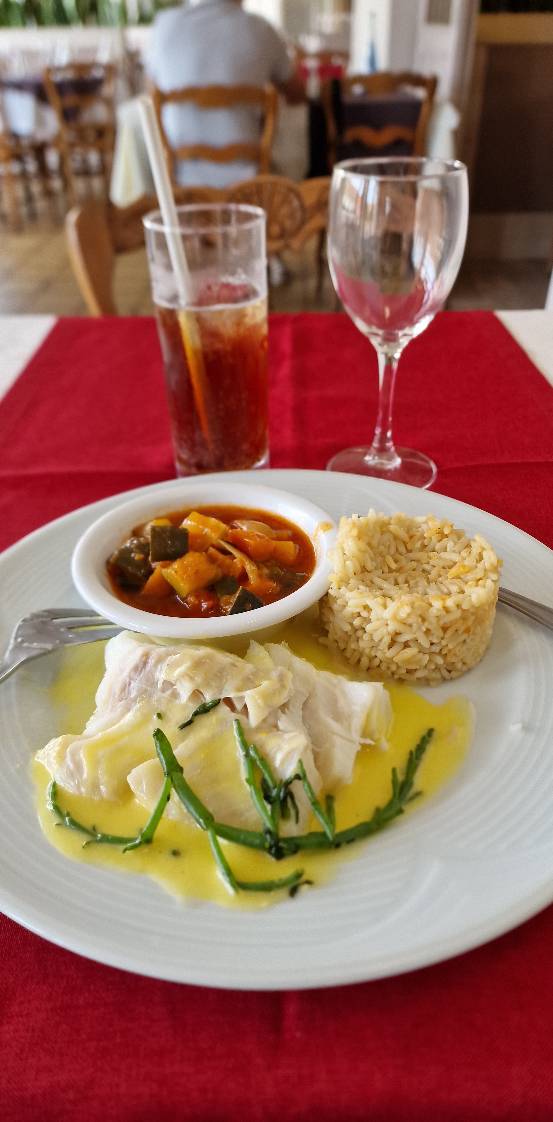 Service agréable, poisson délicieux. Terrasse très agréable. L'accompagnement était cependant bien en deçà (tomates dures, riz cantine.) Au global un très bon moment tout de même !