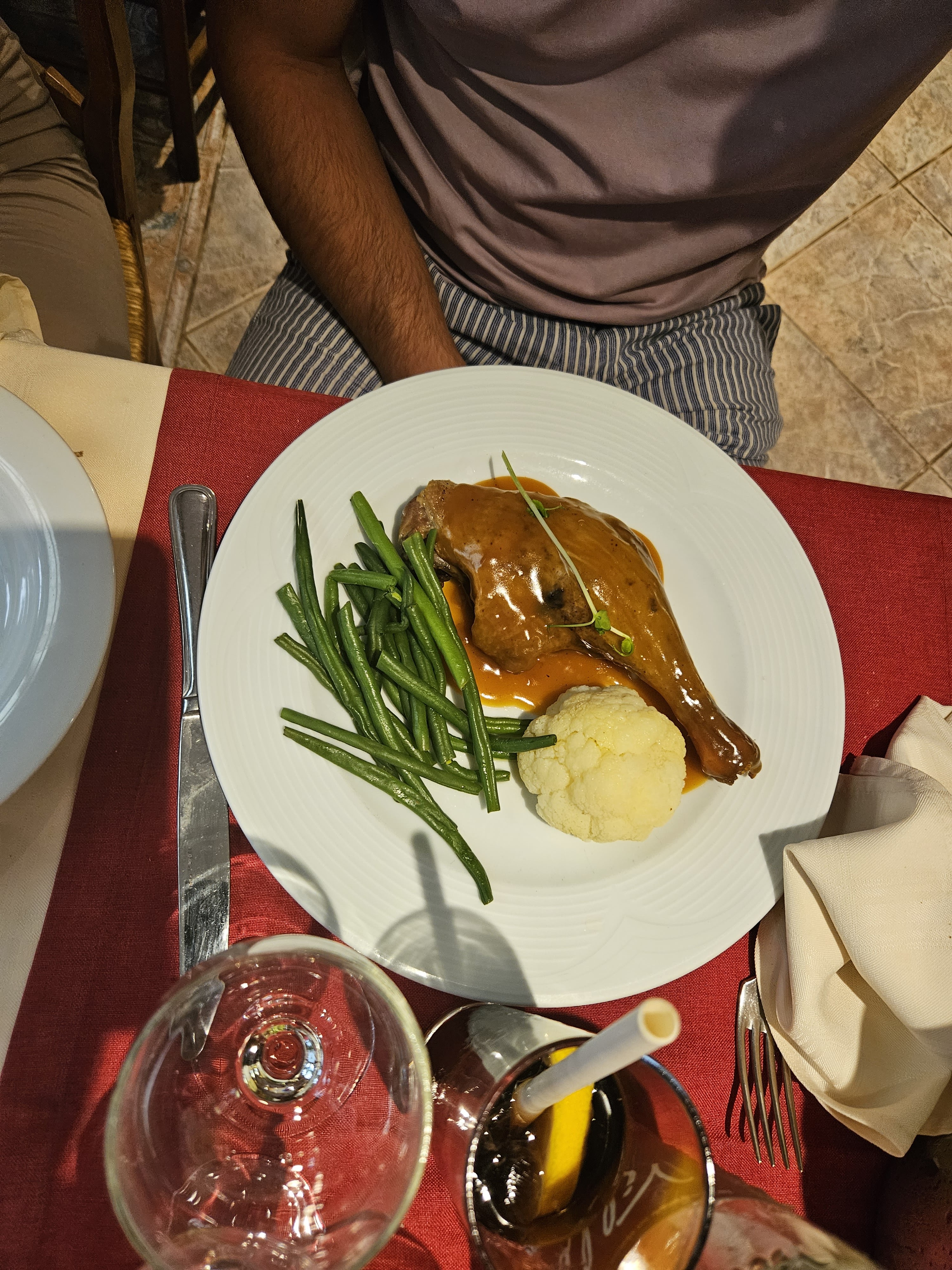 ma cuisse de canard très bonne. mais les frites un peu molle..,. sinon j'y ai vu de très belles assiettes de fruits de mer.... elles avaient vraiment délicieuses...et ĺa salade de la mer pareil.... je recommande..
