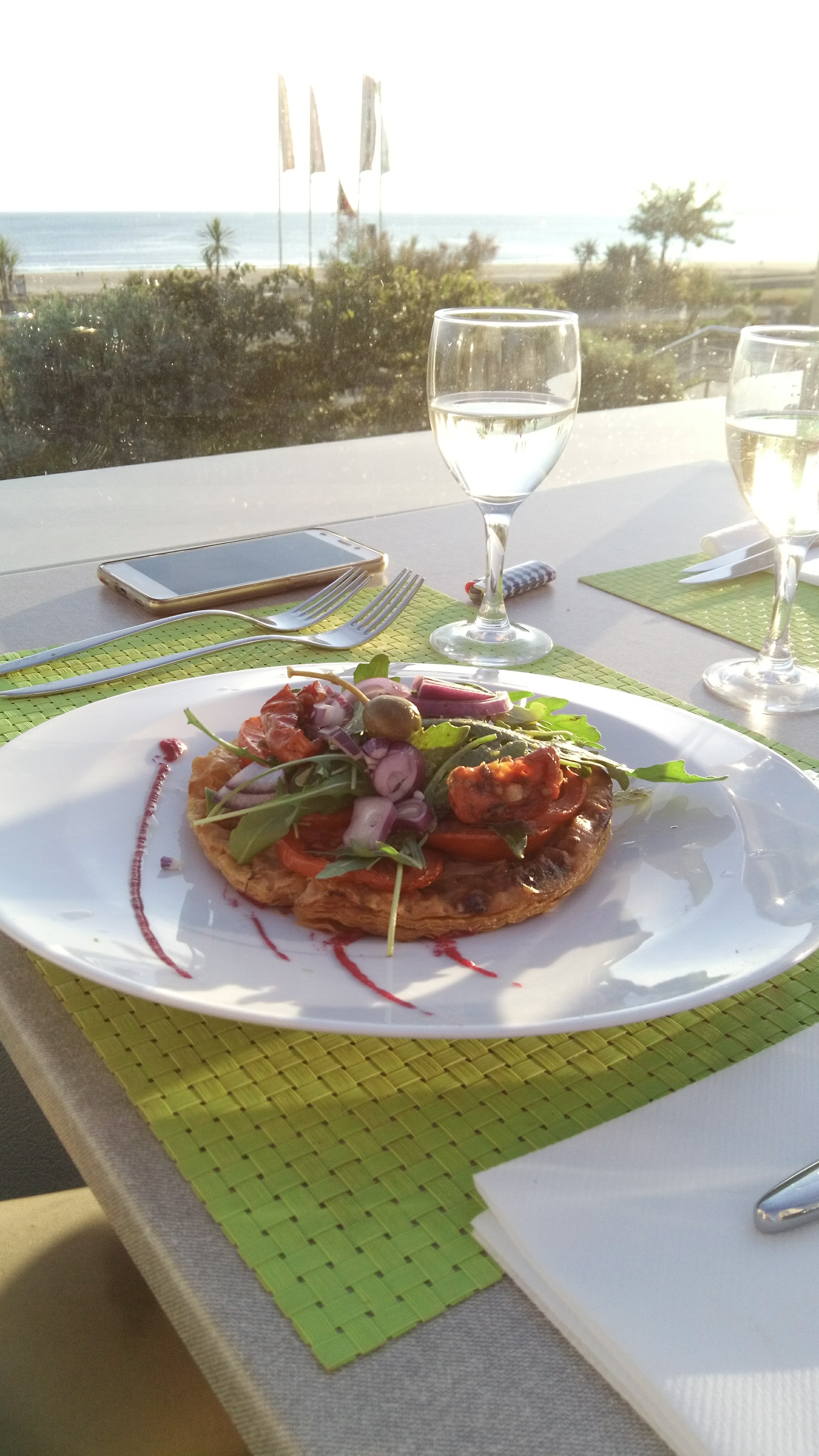 Terrasse agréable. Jolie vue sur la plage. Plats corrects.