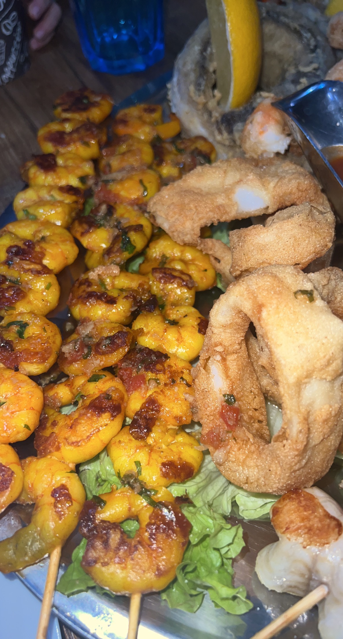 Restaurant top comme au Maroc, crevette pilpil magnifique 😍 les calamars m’ont fait voyager