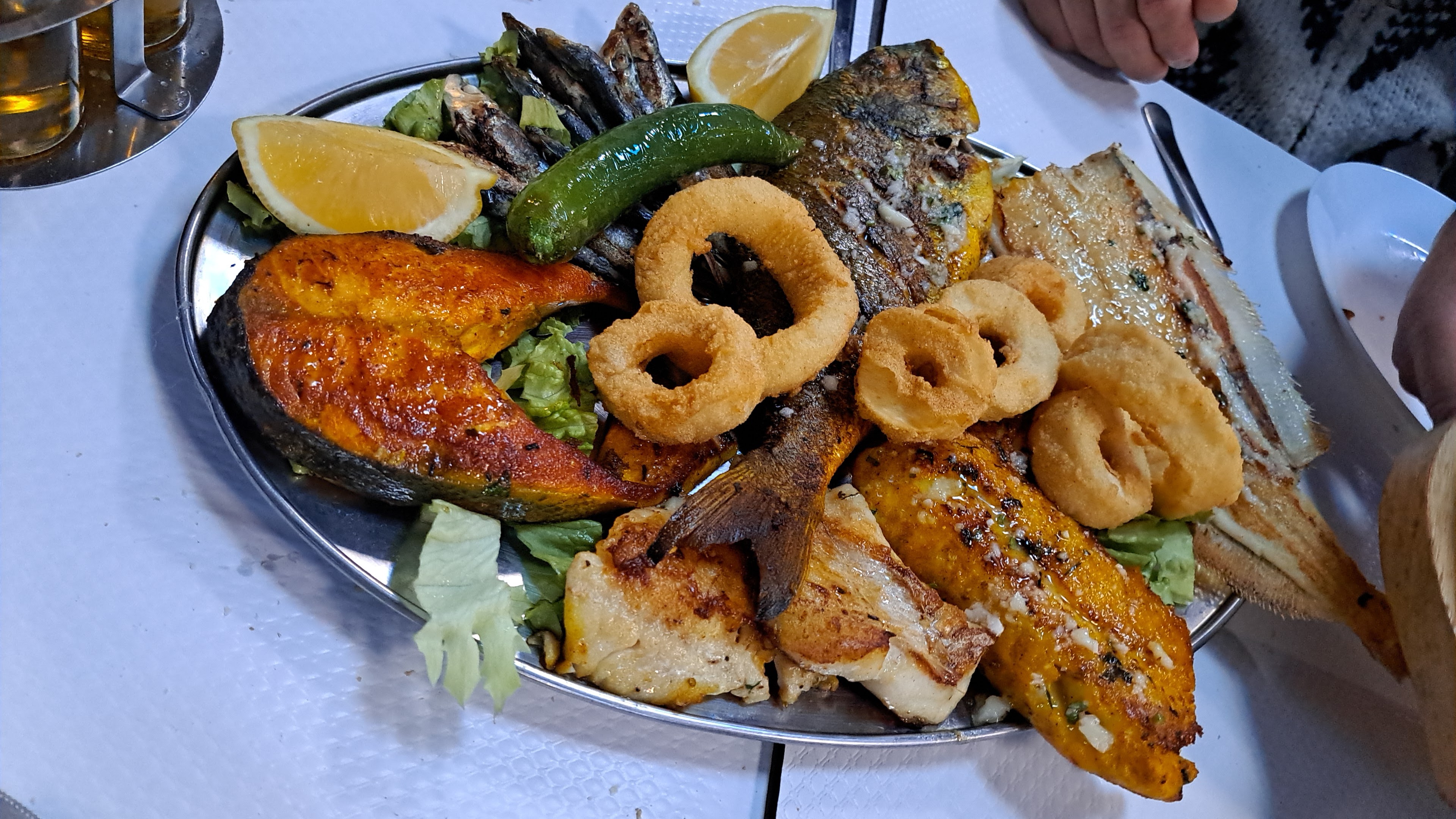 Je me suis laissé tenter par tout les avis positifs sur ce restaurant, je dois avoué que j’ai été déçu, le restaurant a sûrement baissé en qualité. Calamar epais, sa chapelure qui s’en va au moindre coup de fourchette, les crevette n’étaient pas assez cuites. Sardines tout simplement pas bonnes, et là Sol était beaucoup trop assaisonné, sans oublier les frites toutes dures. 62€ pour ce que vous voyez en photo.