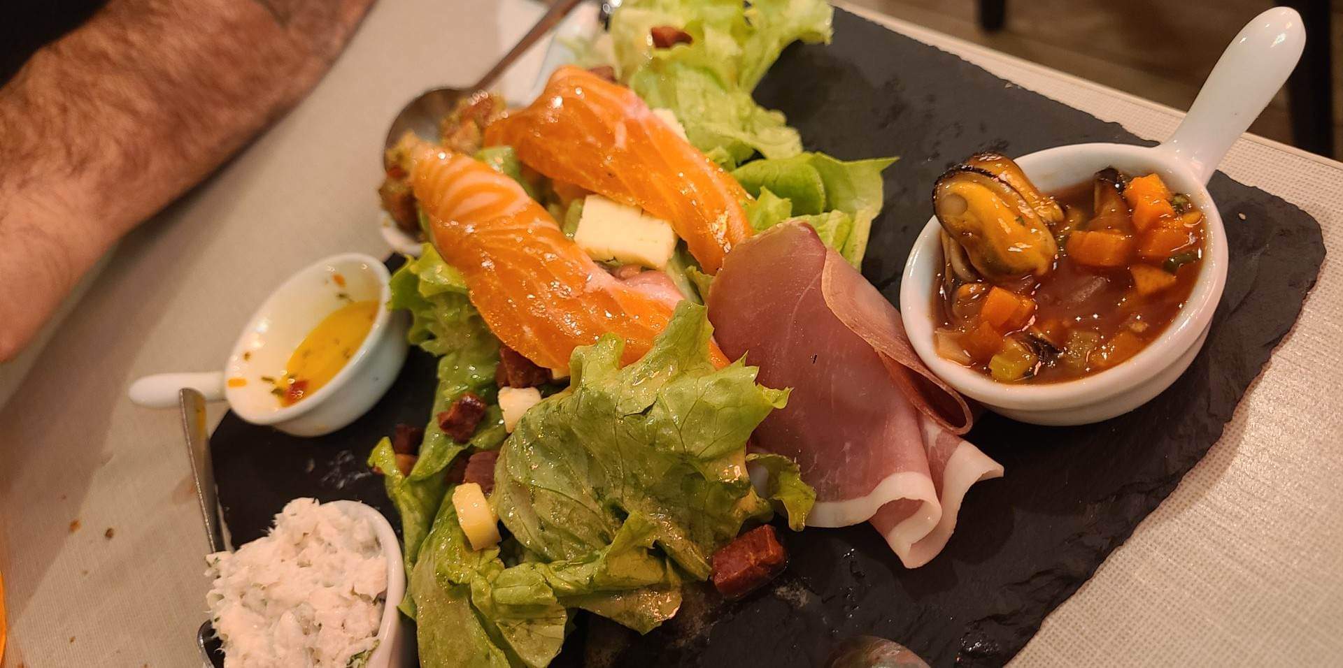 Un plat à 20€ deux morceau qui ce batte en duel une pure arnaque et le pain qui était d’hier je déconseille