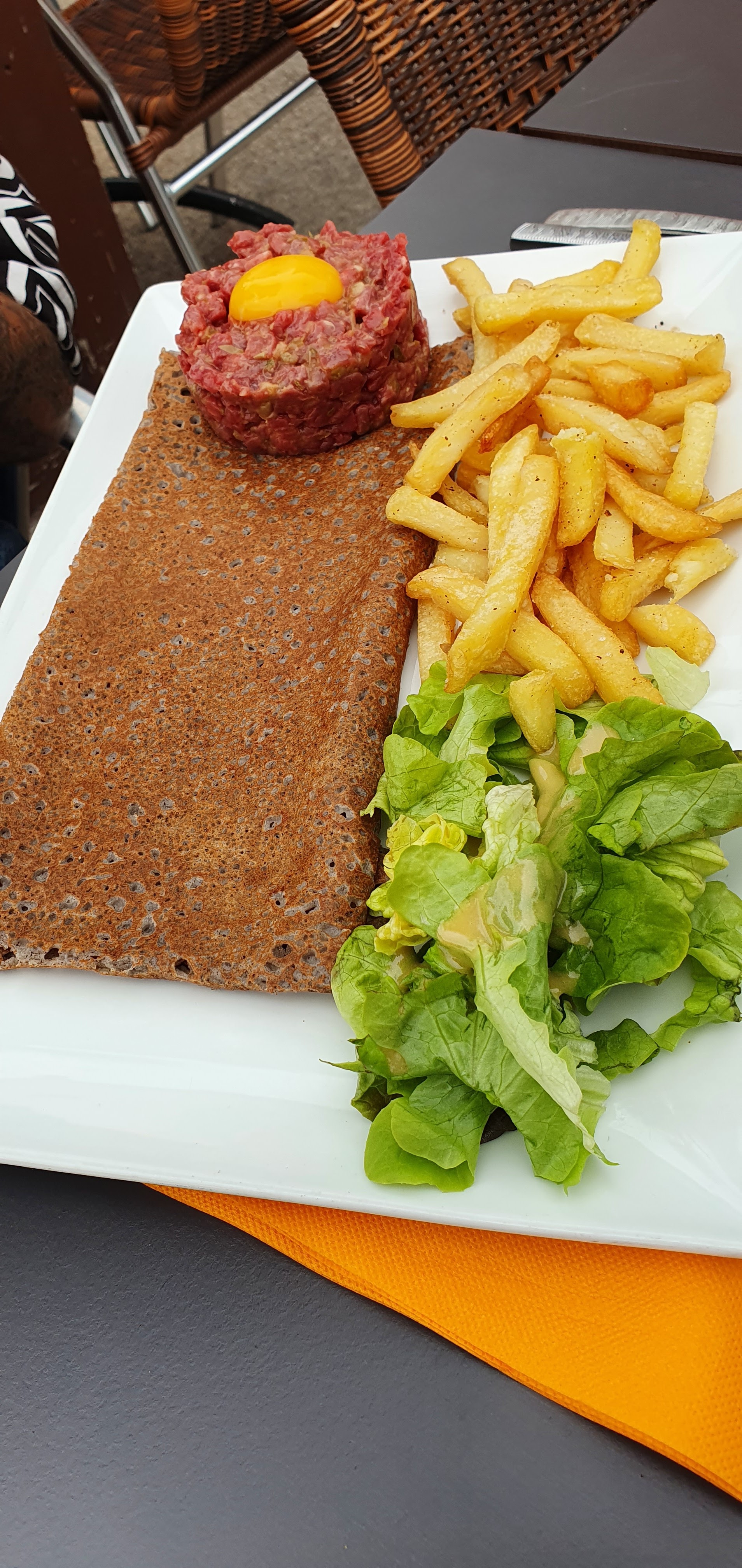 rien a redire sur l'accueil mais quel dommage pour la galette ! je crois avoir mangé la plus mauvaise galette ! très sèche, la garniture juste au milieux, les pommes coupées en gros quartier et pour l'andouillette juste 2 morceaux ! bref avec de l'eau ça passe ..... pour les moules ça a été, les frites très sèches également a passer car on se sent vraiment dans un attrape touriste