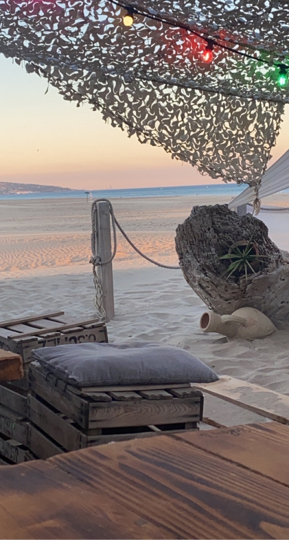 Lieu idéal , calme, ombragé et vent de la mer, après le repas, sieste à l'ombre des parasols sur la plage privée. Tarif accessible (rien à voir avec st trop...). Un excellent endroit pour lâcher prise !