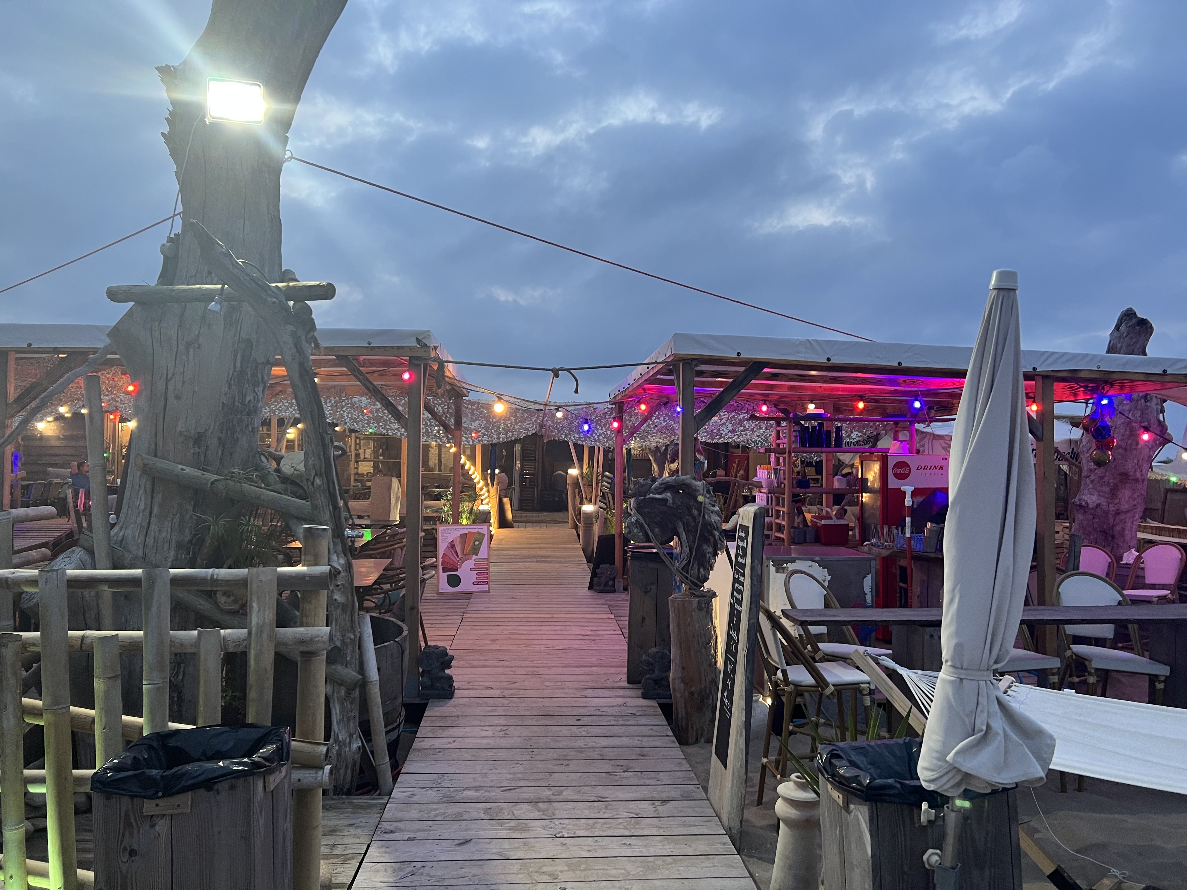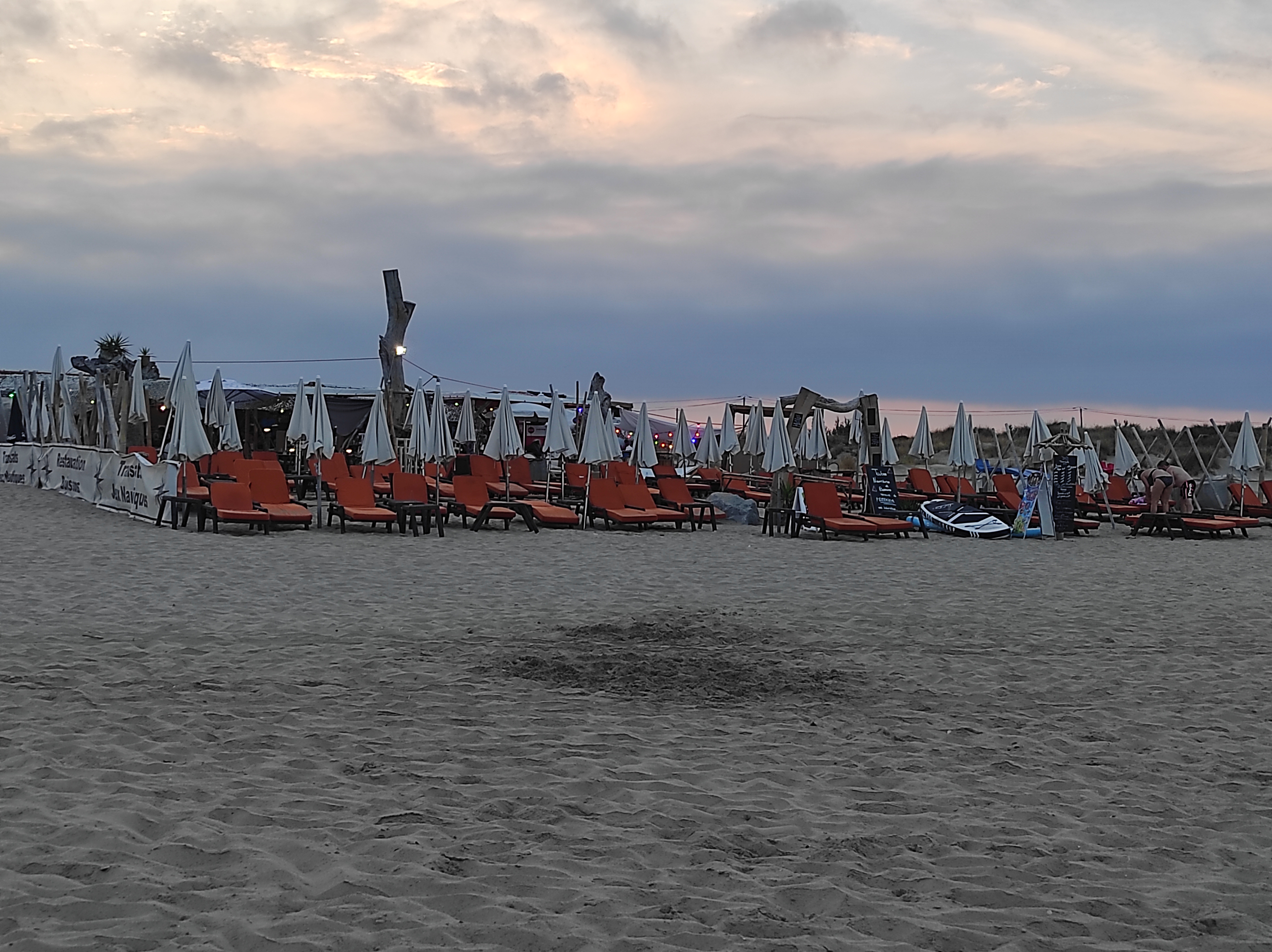 Bar de plage agréable, bien décoré , où l'on peut louer un transat et bénéficier de une douche, y manger et boire.