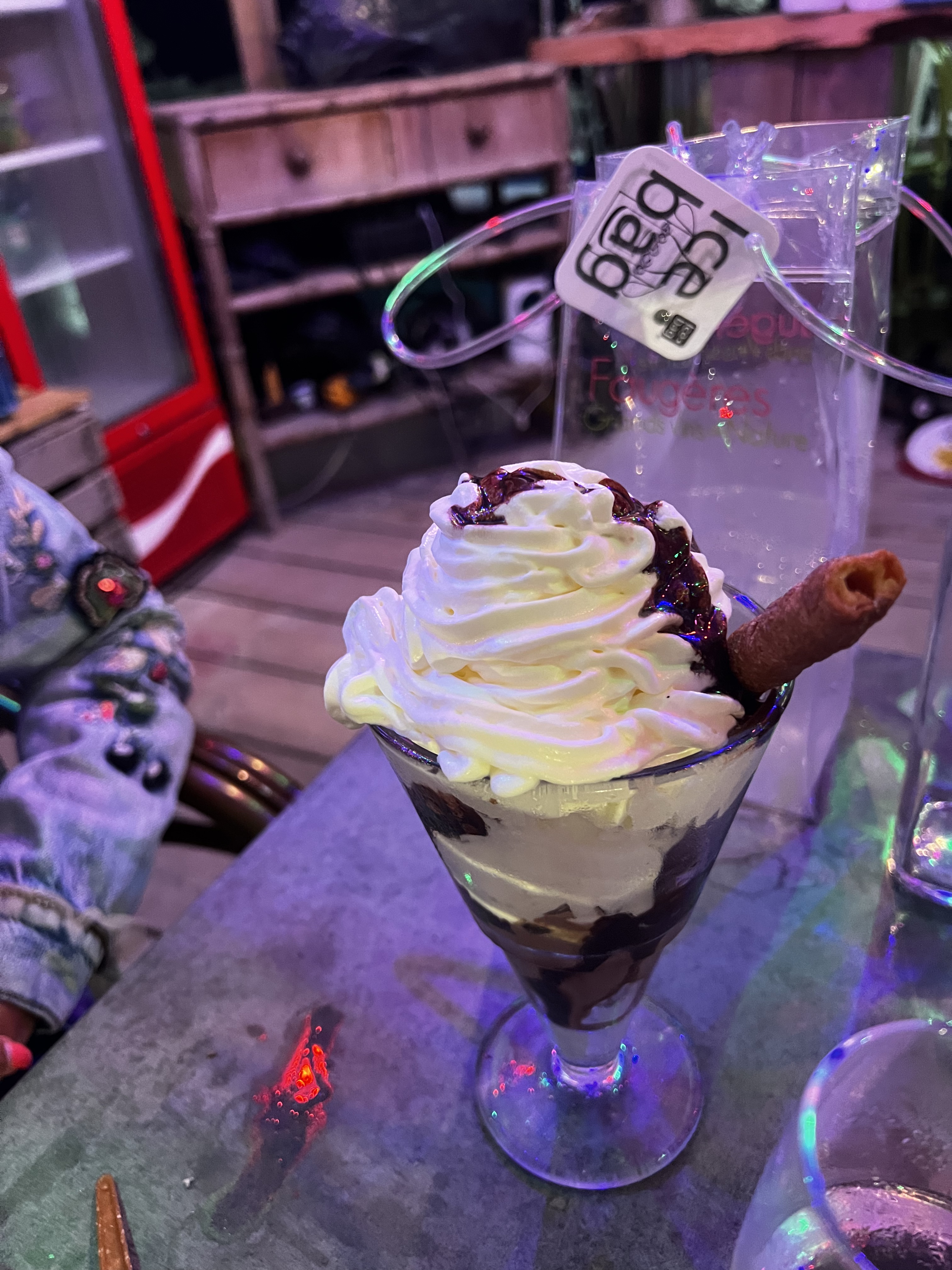 Un accueil très chaleureux dans un magnifique endroit aux eaux turquoises...auprès d'une délicieuse coupe de glace faite maison 😍