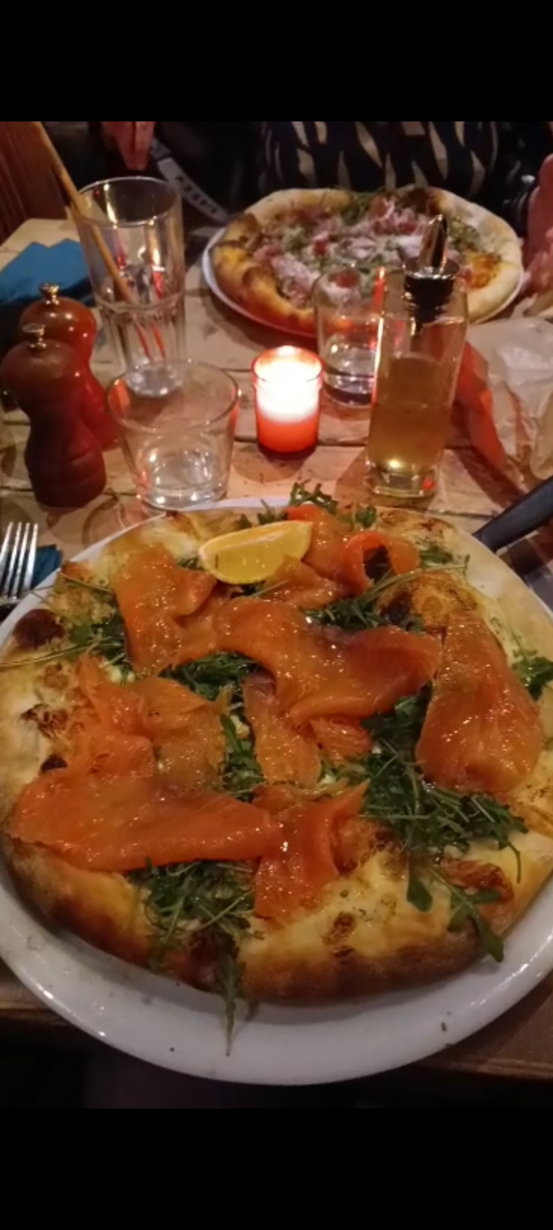 Super expérience ! Le repas était vraiment délicieux de l’entrée au dessert, étant végétarienne et mon copain aussi nous avions peur de devoir manger la même chose mais il y avait pas mal d’option végétarienne que ce soit au niveau des pizzas ou sur l’ardoise du soir. Les boissons étaient top, la serveuse a très bien su nous conseiller sur le vin. L’ambiance était agréable dans le restaurant et le temps d’attente était tout a fait parfait. Petit plus pour l’équipe vraiment très sympathique.