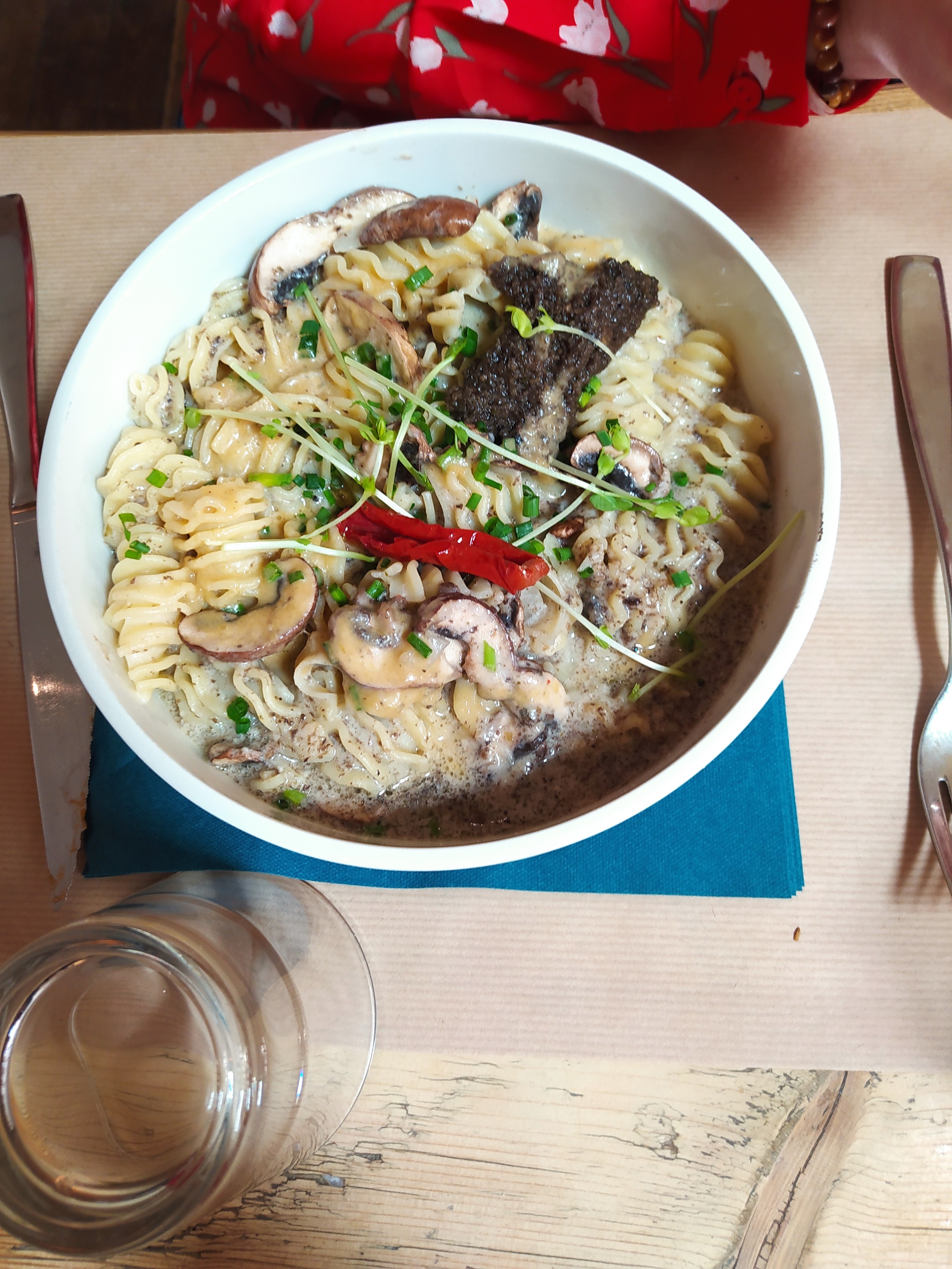 La carte donne envie et beaucoup de choix. Des vins proposés avec certains plats. Les pâtes aux truffes sont excellentes. On mange à sa faim. C'était tellement bon que j'aurai mis un peu plus en quantité pour les gros apétits.