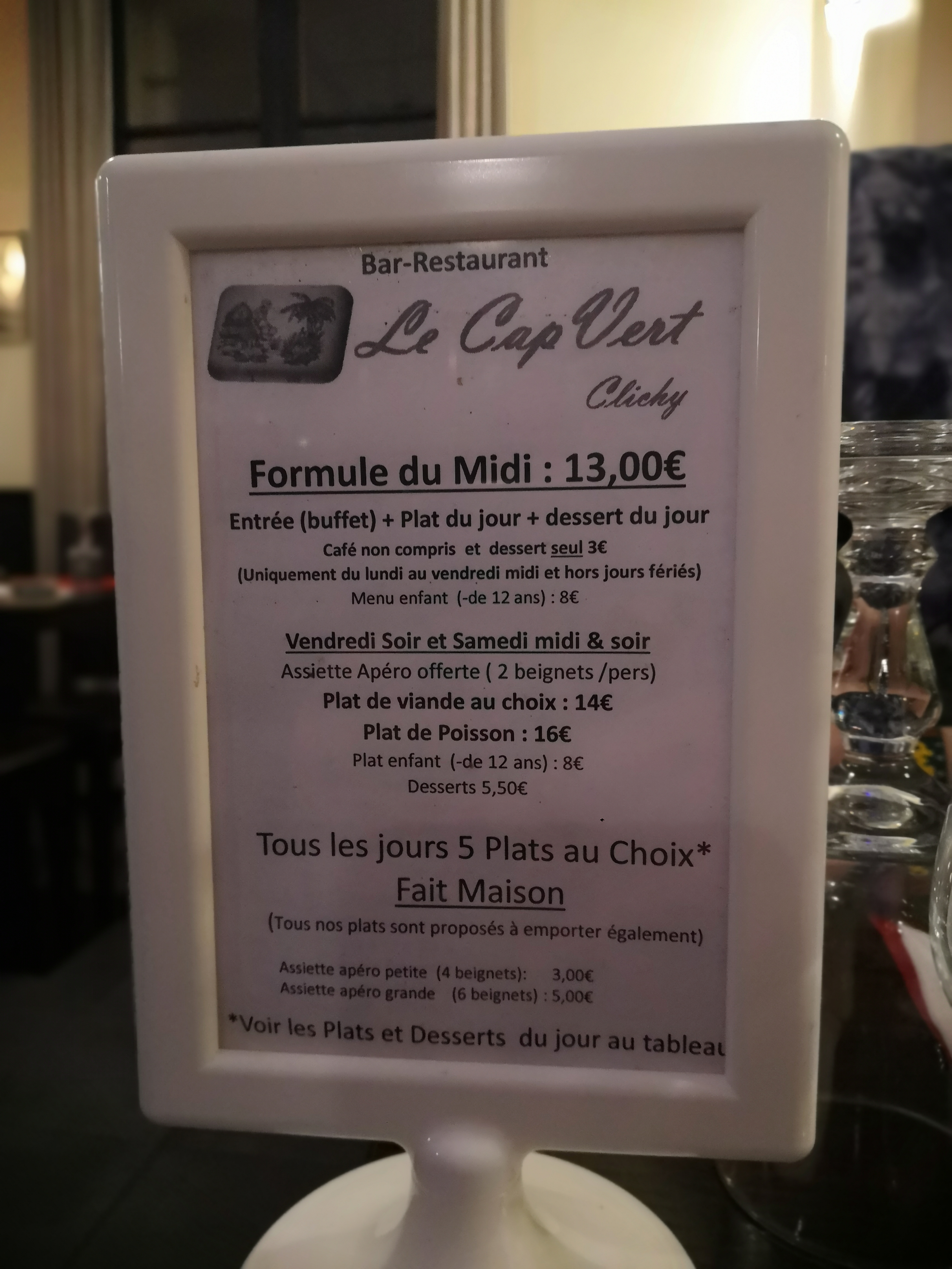C'était trop cher, en semaine 15e tout inclus, mais le samedi le prix est libre et puis on ne comprend pas pas bien le menu. Voilà pas à refaire le week-end. Désolé