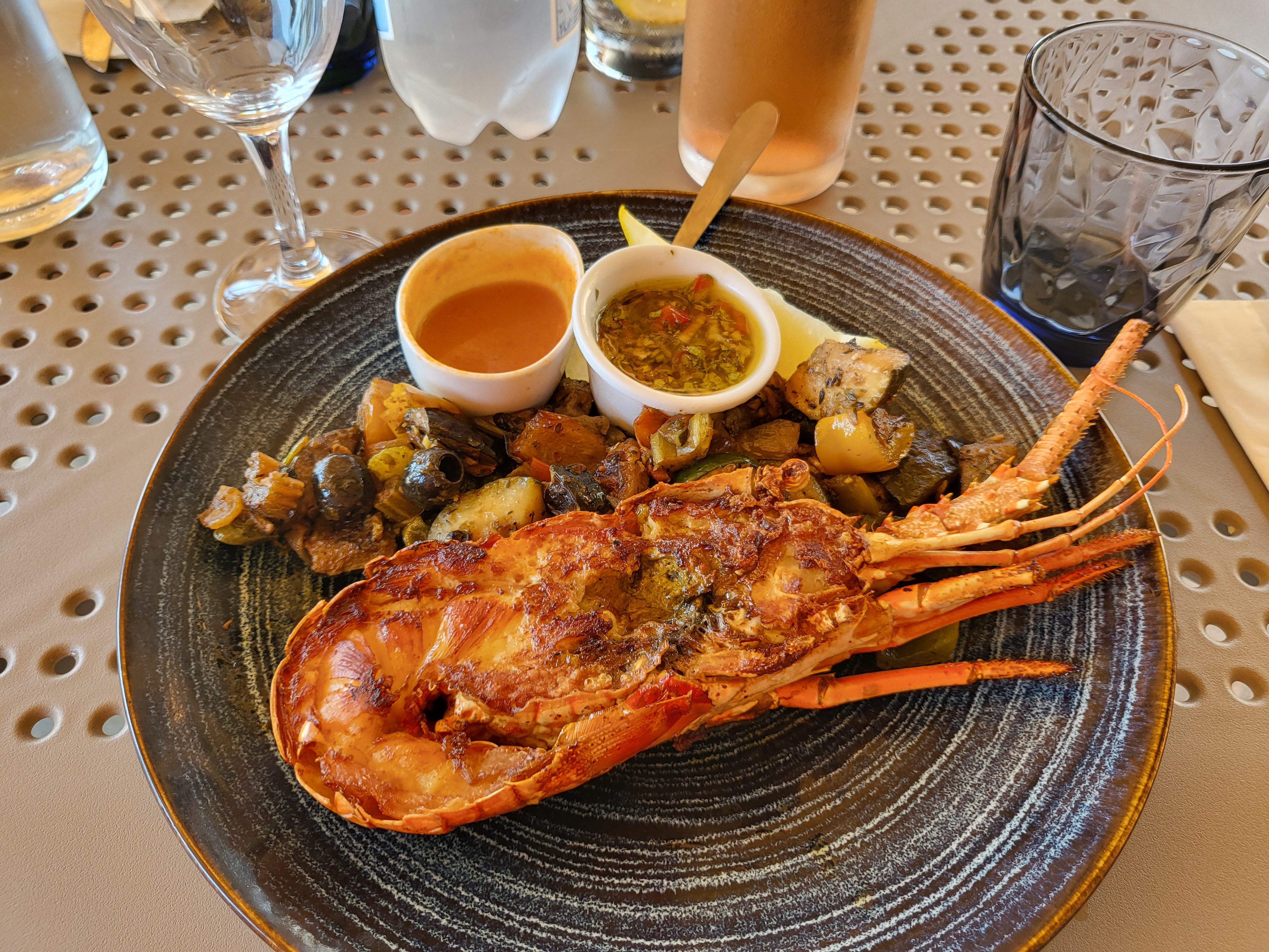 Cadre idéal, tres belle vue, avons mange pâtes aux gambas et pâte à la langouste, très très bons. Nous reviendrons !!!! ( de Normandie) .