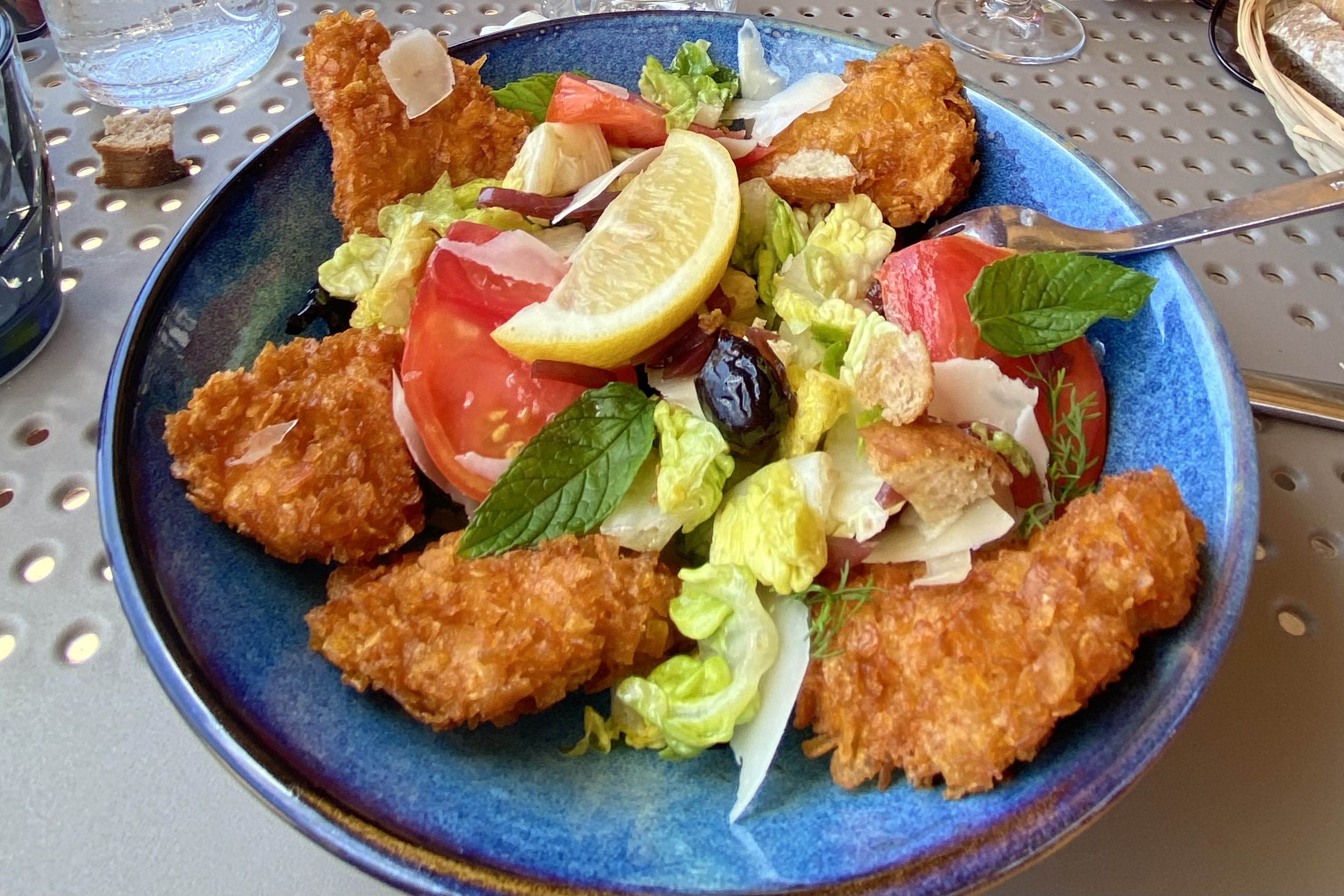 Une daurade fraîche et cuite à la perfection. Malgré la chaleur, la terrasse est très agréable car il y a toujours un peu d’air. Le personnel est aux petits soins. Nous avons passé un excellent moment merci beaucoup.