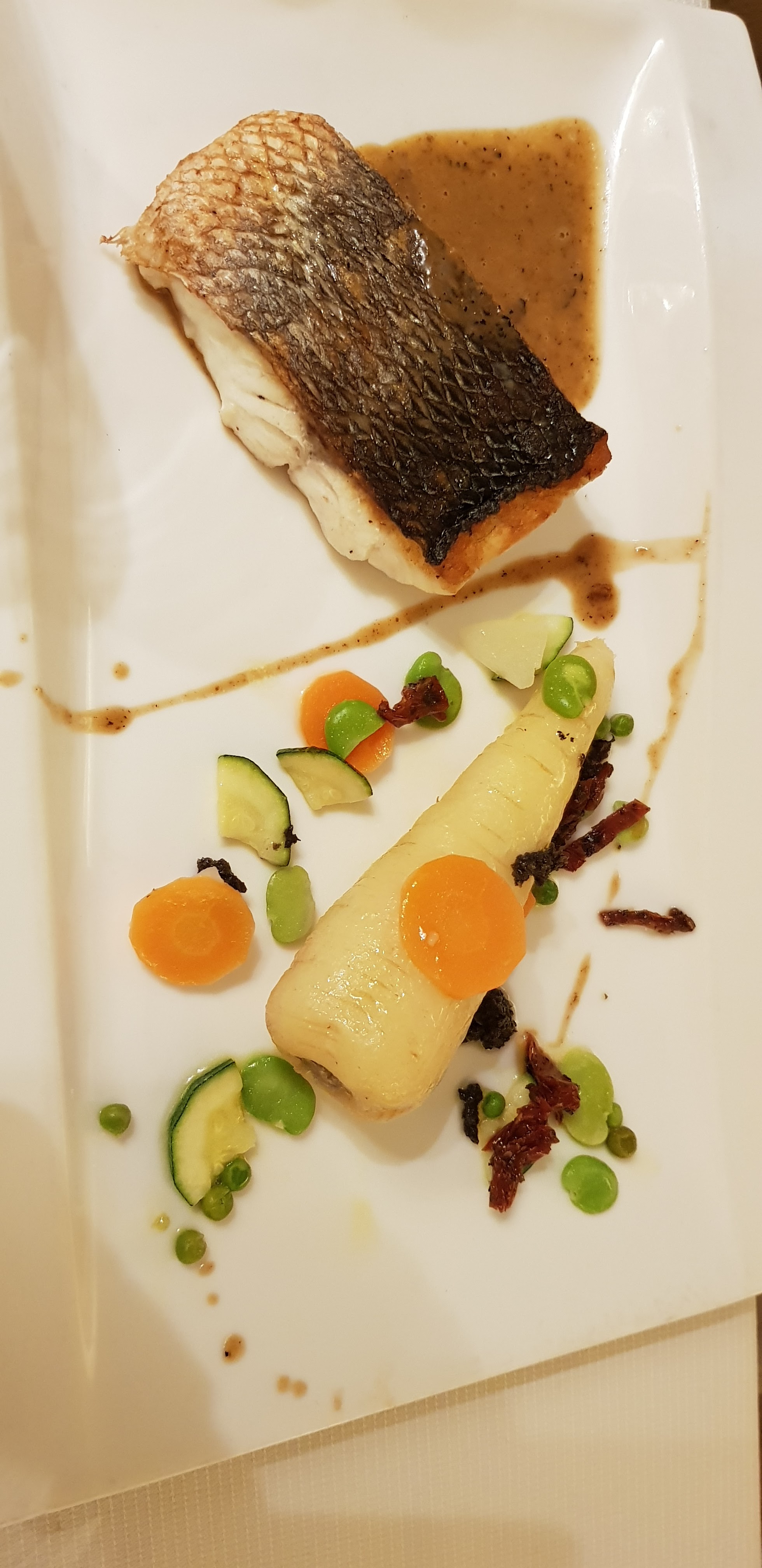 Oui je sais 3 étoiles c’est pas sympa ! Mais je vais m’expliquer 😀 Le lieu est assez soigné bien qu’un peu désuet et défraîchis ! Le personnel est très efficace et au petit soin. Nous avons prix le menu à 45 euros ainsi que 2 cocktails sans alcool. Concernant les plats, ils sont très soignés visuellement, une vraie attention est portée à la composition des plats. Lesplats sont vite et très bien servis ! Mais dans l’assiette, les saveurs ne sont pas à la hauteur, malgré une indéniable envie de bien faire. J’ai pris le thon, aucun goût, à tel point qu’une dame a une autre table a demander de quel poisson il s’agissait… pour la cuisson, nous avons demandé saignant, nous l’avons eu à point donc raté ! Les plats sont entrecoupés de petite vermines et autres qui font plaisir mais qui l’a encore manqué de saveur (l’originalité reste présente) Concernant les desserts, même si je n’ai pas aimé le mien, c’était très beau visuellement et la encore une vrai recherche pour bien faire ! Concernant les cocktails, aucun intérêt, au goût un quelconque jus de fruit basique, même si je persiste a dire qu’il y a là aussi une volonté de bien faire les choses, ça se sent. Le café a 4 euros, c’est vraiment abusé… Bref, des airs de palace dans ce restaurant qui ne paie pas de mine, mais au final un peu déçu ! Si de passage, je vous recommande quand même de venir mais peut être s’en tenir au menu à 21 euros.