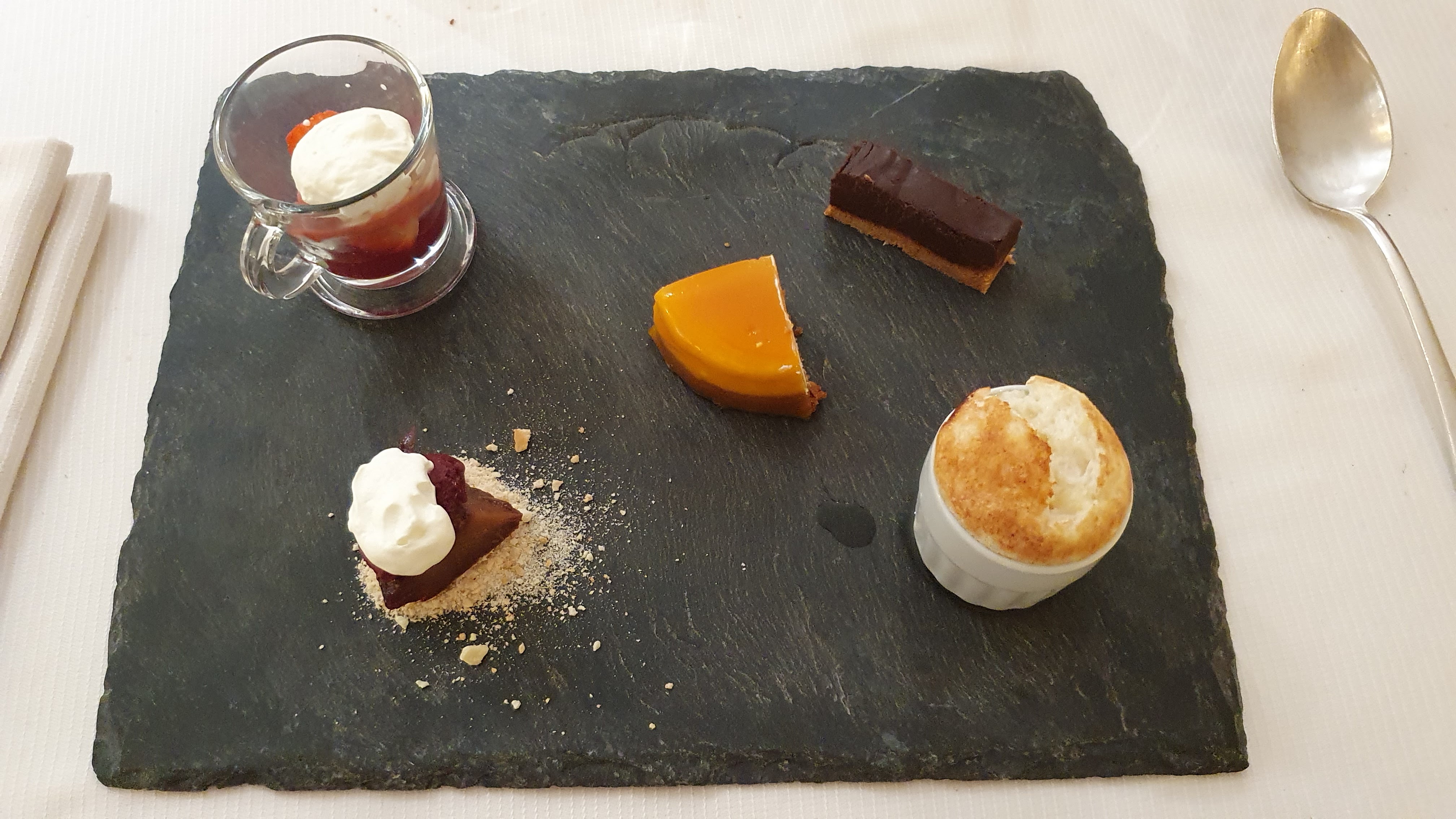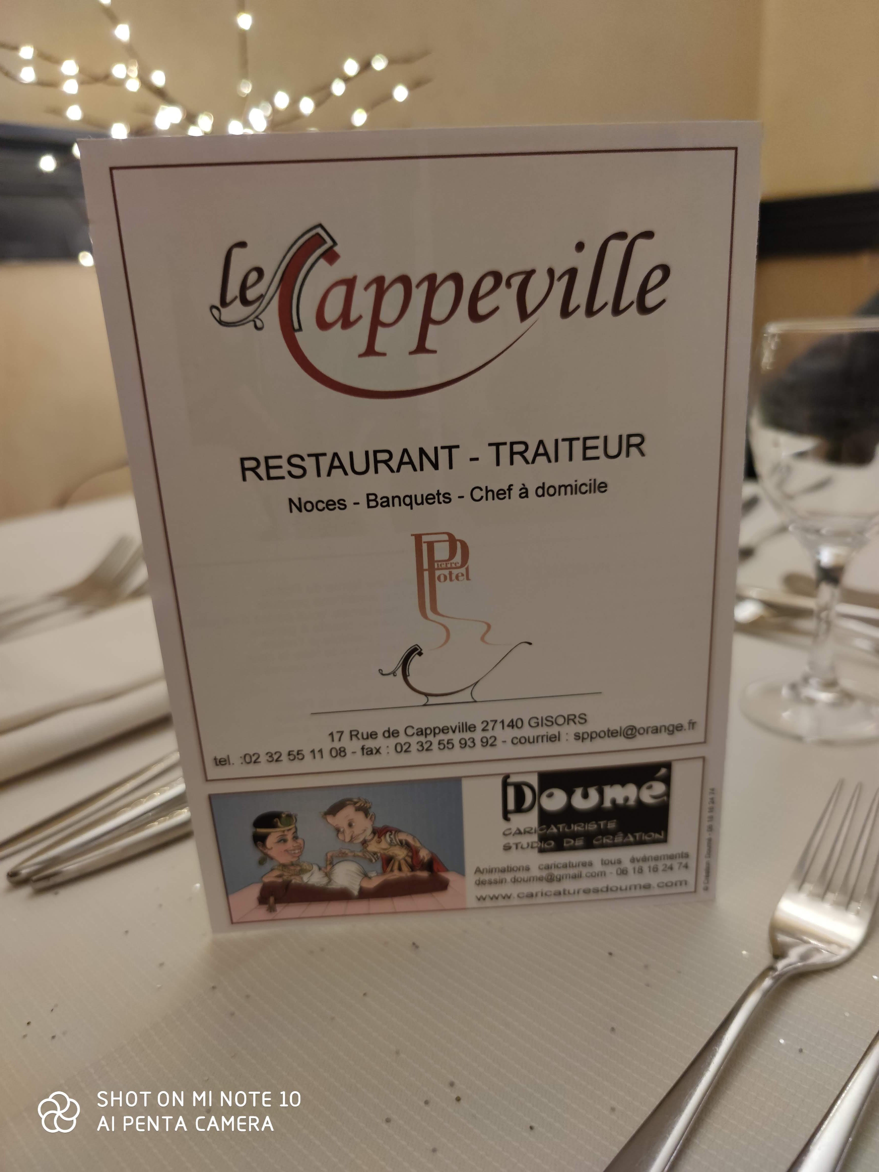 Pour notre anniversaire de mariage et mon anniversaire nous avons réservé au Cappeville. Après une coupe de Champagne, Nous avons pris le menu dégustation du marché du jour. Un délice. Foie gras, salade de homard, Huitre frit, escargots, langoustine, turbot, trou normand, médaillon de veau et bœuf, plateau de fromages et le dessert Soufflé au calvados, tarte fruits rouges, tarte citron et moelleux au chocolat. Un 10 sur 10.