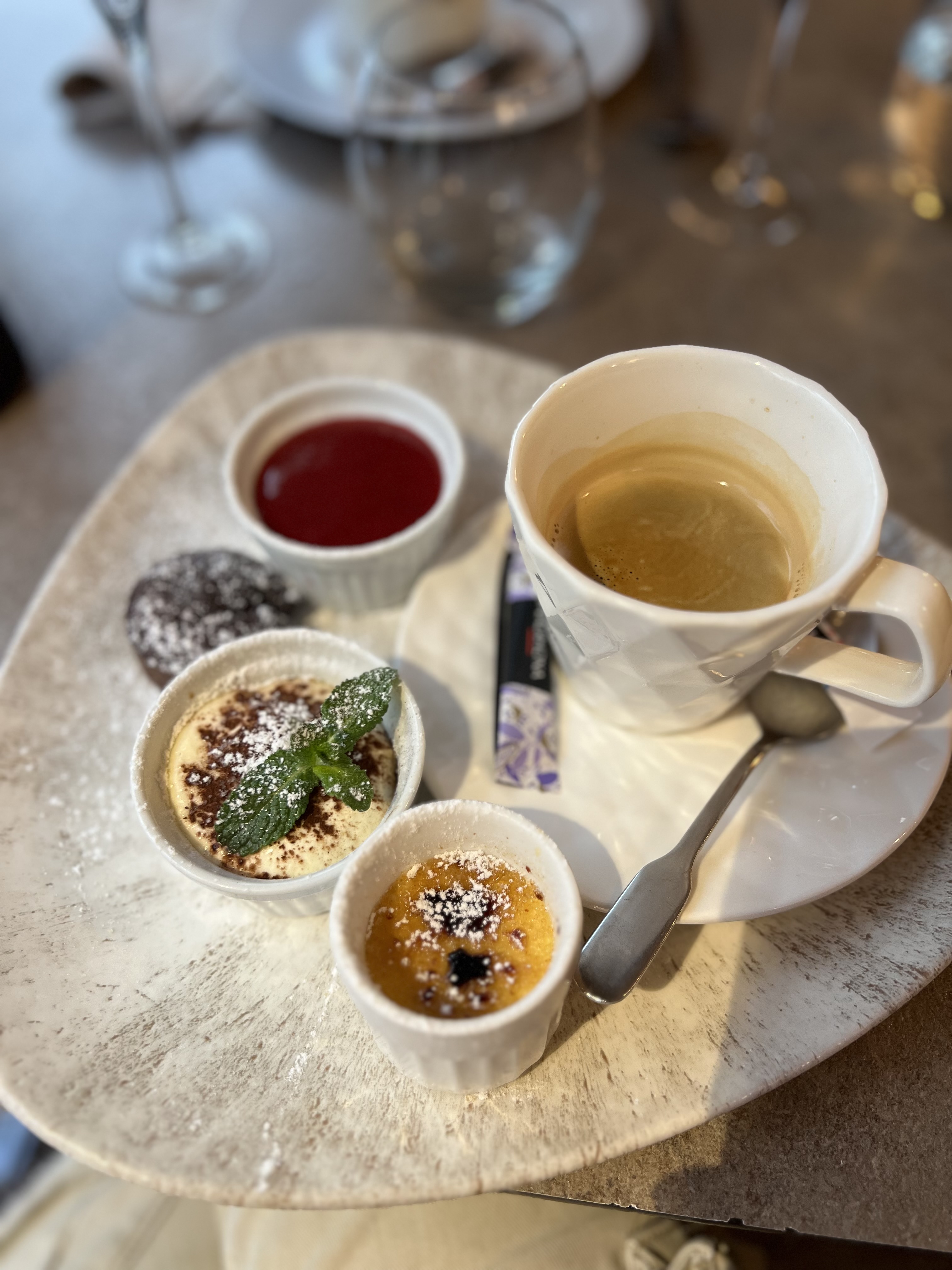 Extrêmement déçus, nous avons été malade toute la nuit. Nous étions habitués à venir et étions satisfaits du service et de la nourriture. Pas cette fois ci. Service approximatif. Quant à la nourriture… au goût la pizza était fort salée. Et pour le dessert (café gourmand à partager) la pannacotta avait vraiment très mauvais goût. Nous nous sommes demandé si elle n’avait pas tourné. Quand a l’infusion on nous replace le goût choisi par un autre en pensant qu’on ne s’en rendrait pas compte. Quand je le signale à la serveuse on me dit qu’il n’y en a plus, dans ce cas il suffit de prévenir le client qu’il puisse en choisir un autre au lieu d’imposer autre chose qui ne soit pas à son goût. Bref tout faux pour cette fois. De plus juste après le repas nous avons été malade toute la nuit. Nous ne reviendrons plus.