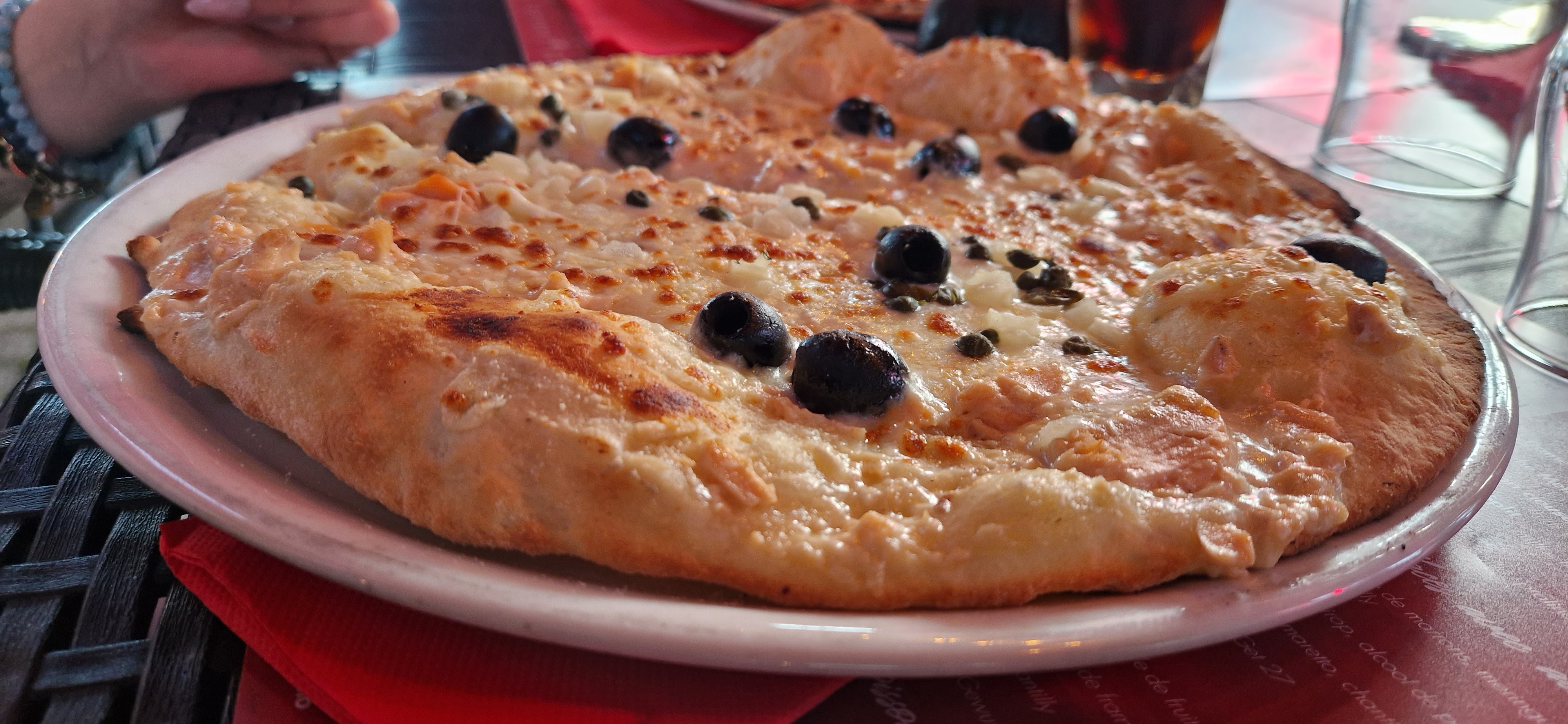 Nous avons commandé des pizzas et des lasagnes bolognaise et je donne raison aux autres commentaires qui disent le restaurant devrait arrêter de faire des pizzas. J’irais même plus loin en disant d’arrêter de faire des plats « italien ». Quand on voit la quantité de plats à la carte, c’est sûr que la qualité pêche à un moment donné. La pâte à pizza n’est vraiment pas bonne, elle n’est pas aérienne ni croustillante comme on s’attend. Elle est dure et compacte. Ça ressemble à de la pâte à pizza de ces boites Francine que l’on peut faire à la maison. Concernant la pizza capri, 14€50 pour ça (voir photo) c’est du vol. Où est la roquette ? Où est le jambon cru de qualité ? Le parmesan coupé en carré de même épaisseur, est-ce vraiment du parmesan ou quelque chose avec l’appellation parmesan ? Les lasagnes sont de qualité moyenne Bref, sûrement bien pour les autres plats, mais à fuir en ce qui concerne pizza et lasagne.