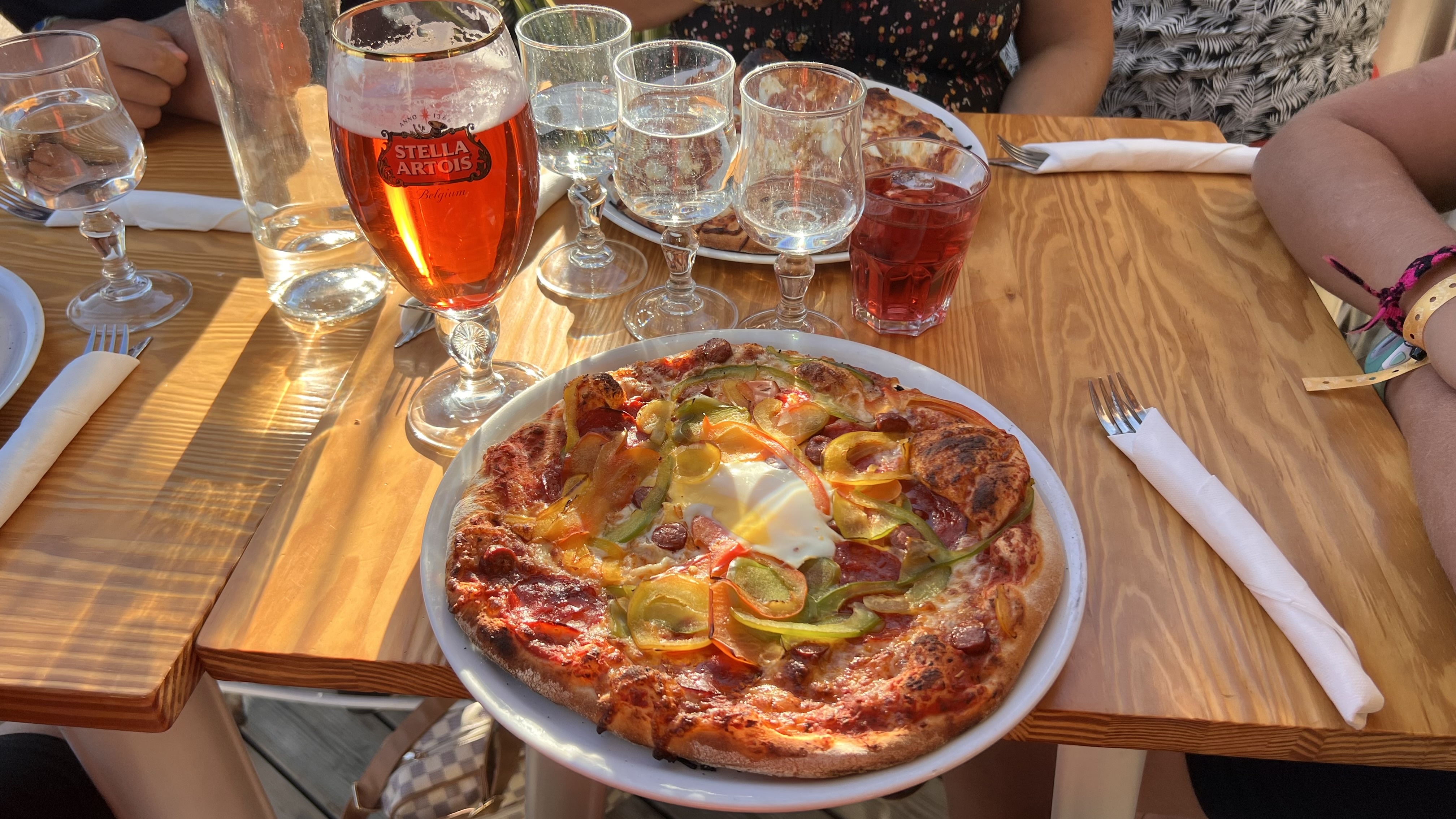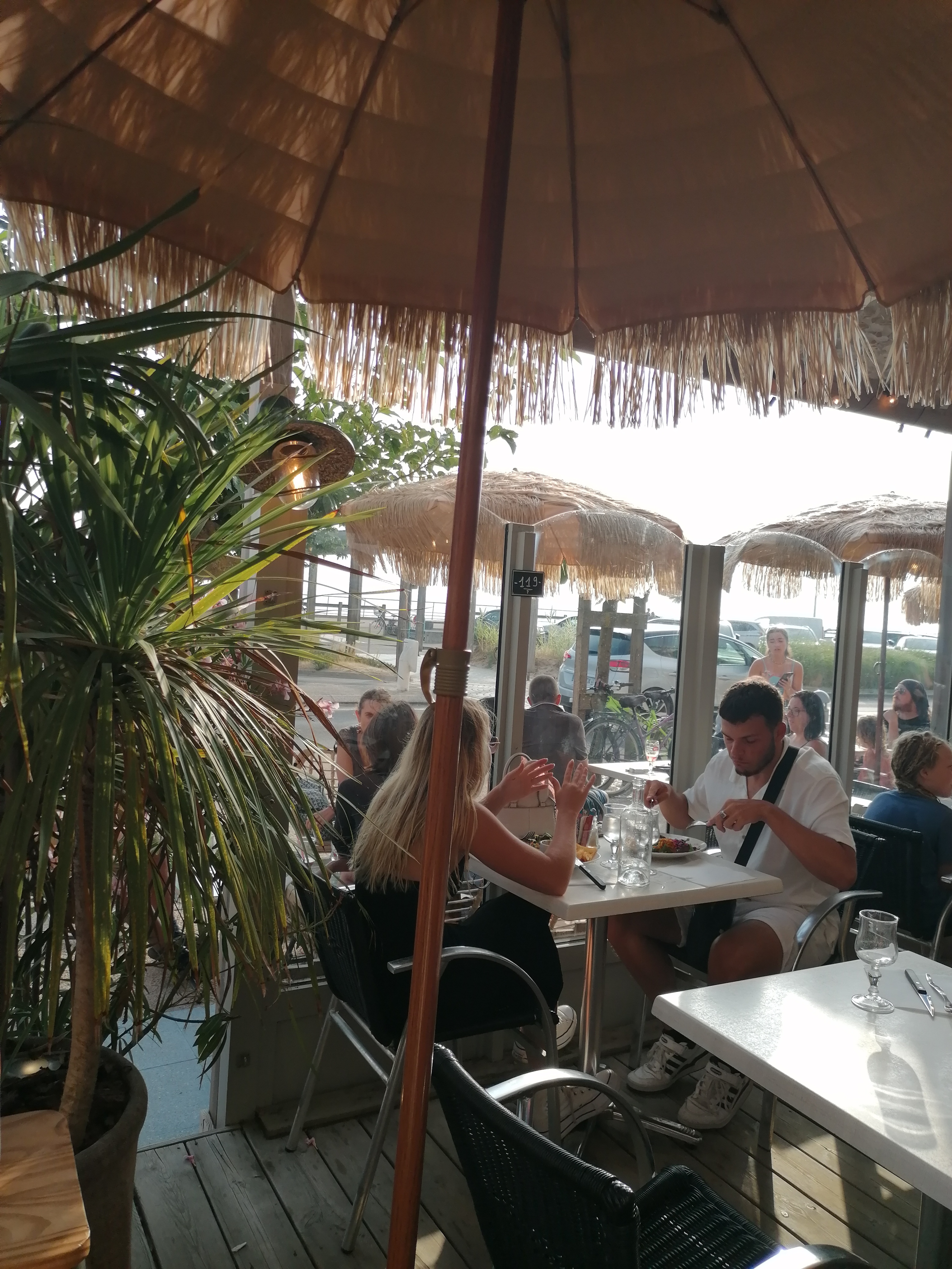 Nous nous sommes arrêtés mange une pizza tout en contemplant le coucher de soleil. Nous nous sommes installé dans les coussins sur la droite du restaurant, place agréable car en extérieur, cooconing et pas bruyant. Le service fut toutefois un peu long. Les serveuses sont cependant souriantes et très agréable. Je recommande