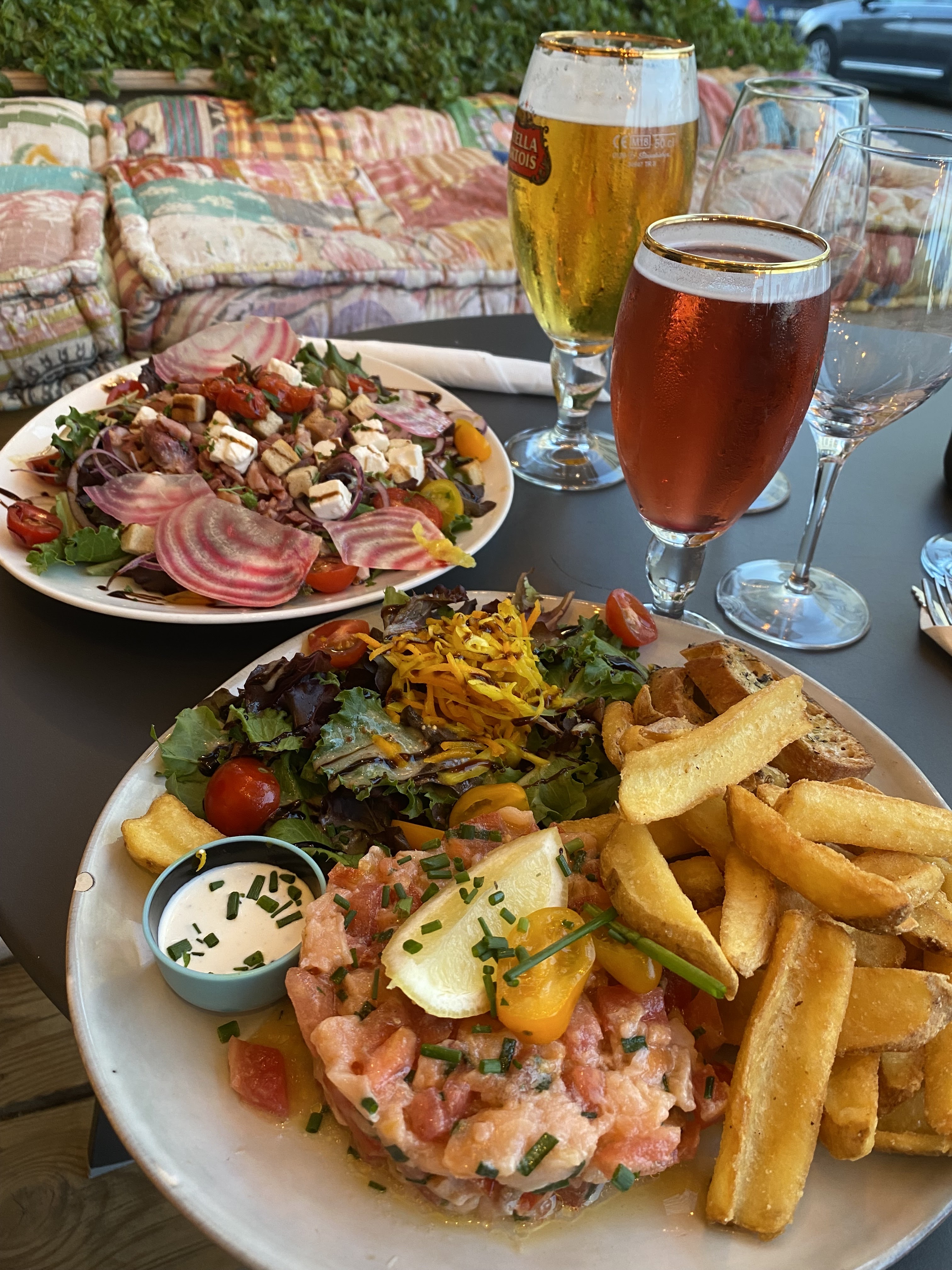 Très bon moment passé dans ce restaurant..nous avons mangé sur les jolis canapés colorés très sympas.. Le tartare de saumon est l'un des meilleurs que j'ai pu manger.... Les moules sont très bonnes aussi. Les serveuses sont très agréables. Je recommande