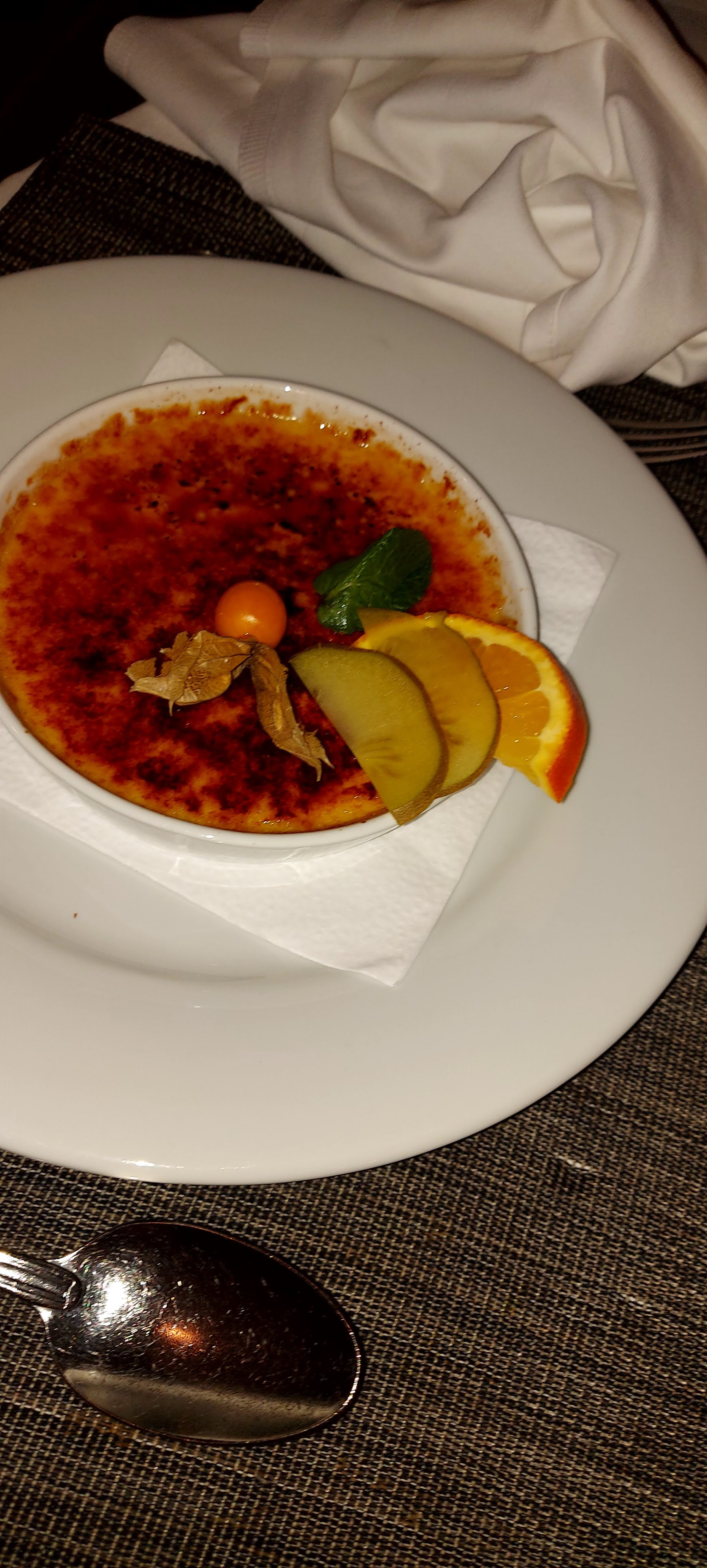 Bilan mitigé au niveau de la cuisine, foie gras excellent bien que trop salé. La carbonade de cerf trop fade à mon goût. Tout le reste était parfait