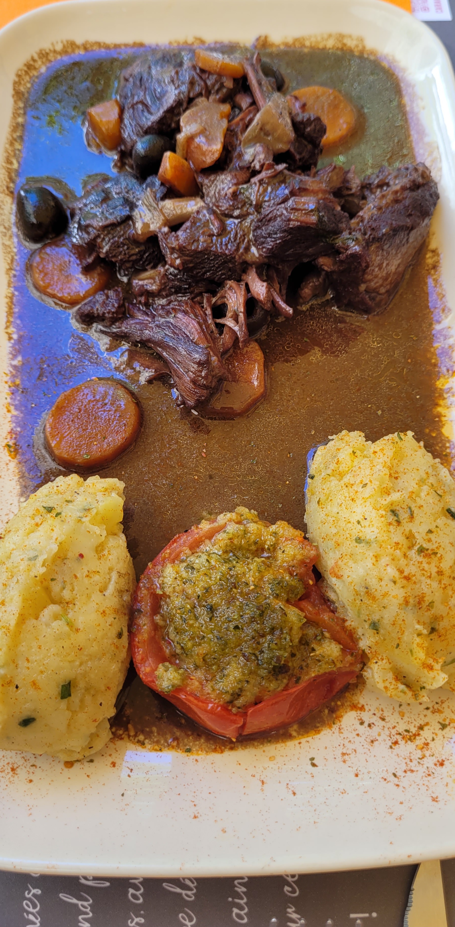 Très bon plat tout est fait maison, dommage il n’y avais pas ce jours la Gardianne. Mais je recommande, il y a eu bonne ambiance