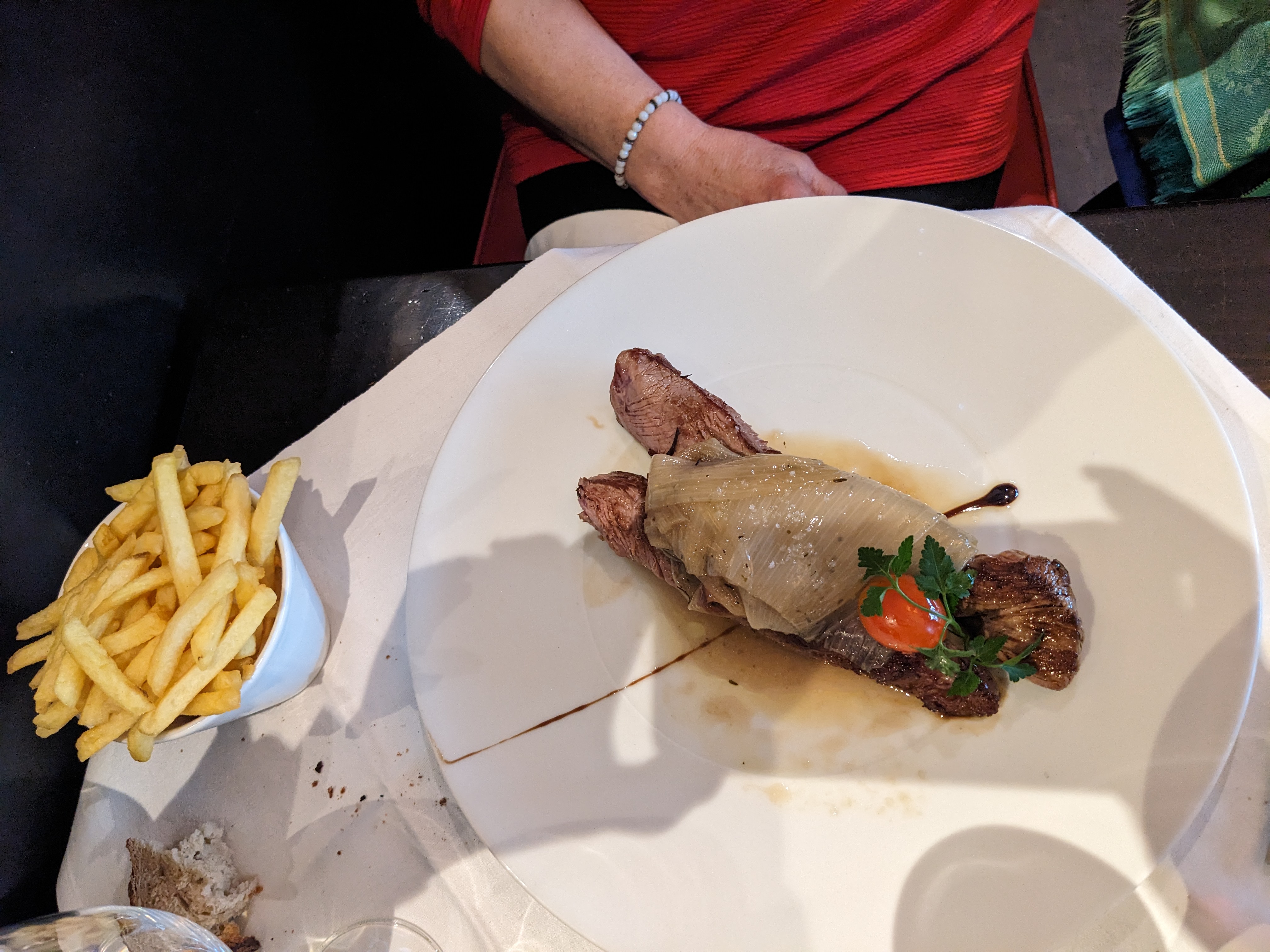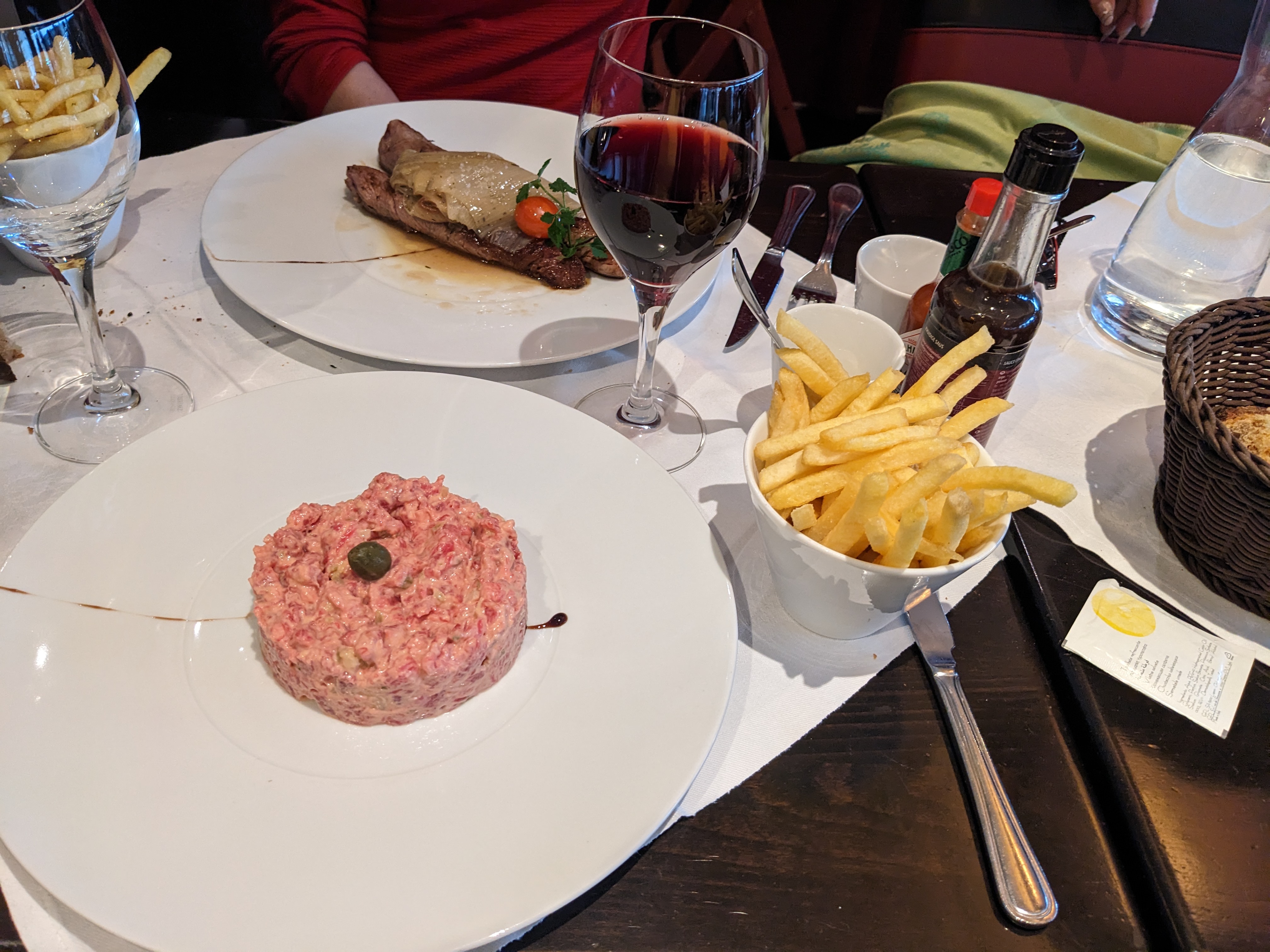 Accueil et service agréable mais les bavettes que nous avions prises n’étaient pas de bonne qualité car beaucoup de nerf à l’intérieur. Les frites quant à elles étaient bonnes. En dessert nous avions pris des crêpes et elles étaient bonnes également.