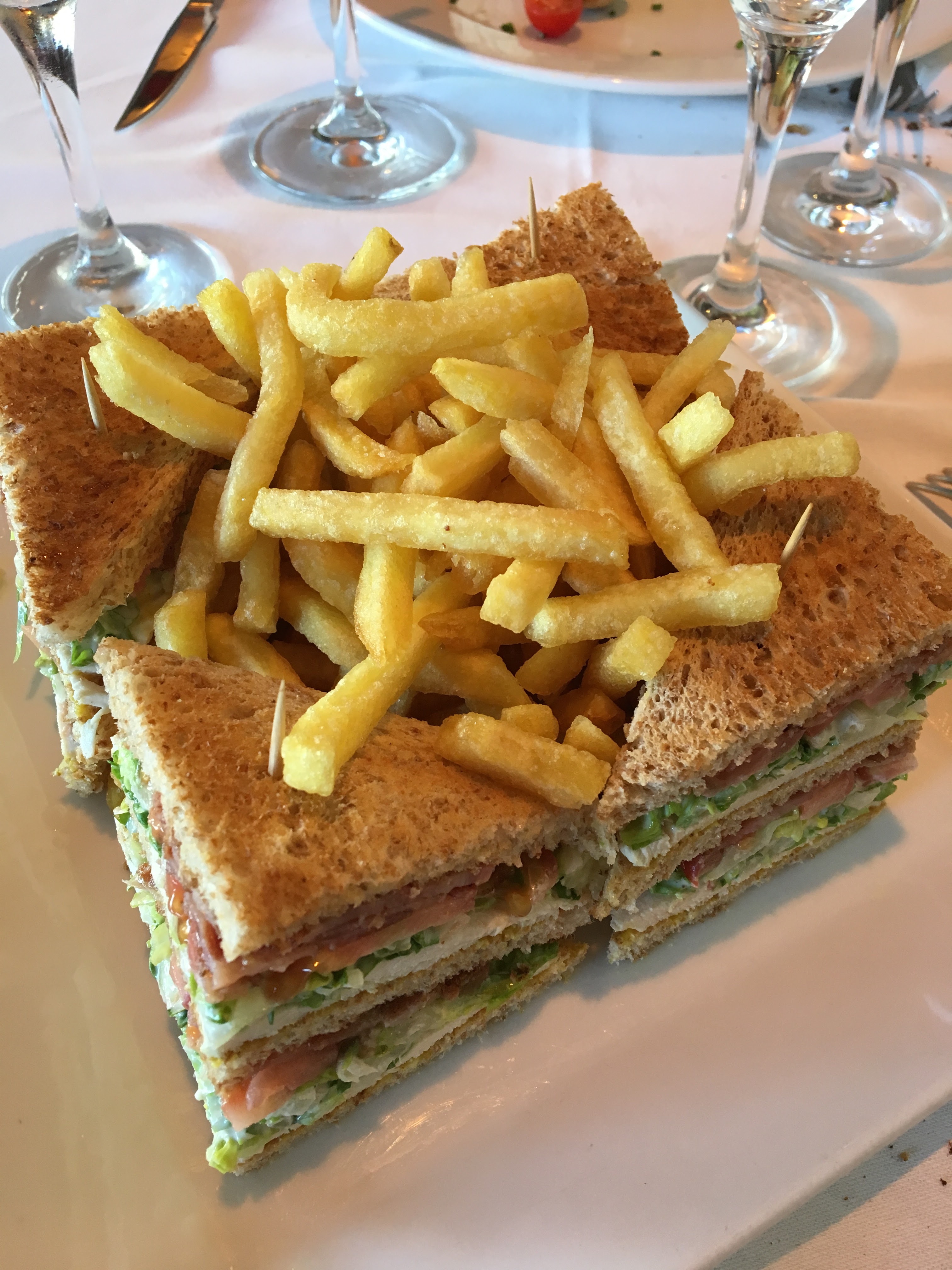 Repas Parfait ! Un samedi midi, nous sommes allés déjeuner dans ce restaurant qui pourrait être qualifiée de brasserie haut de gamme. Les tarifs sont raisonnable, le cadre sympa, les serveurs efficaces et gentils. La salade Cesar doit être la meilleure que je n’ai jamais mangé, et très copieuse également. Les clubs sandwichs sont aussi très bon et généreux avec une présentation originale. Le café est accompagné d’un petit bonus sucré très bon! Bref, une bonne surprise !