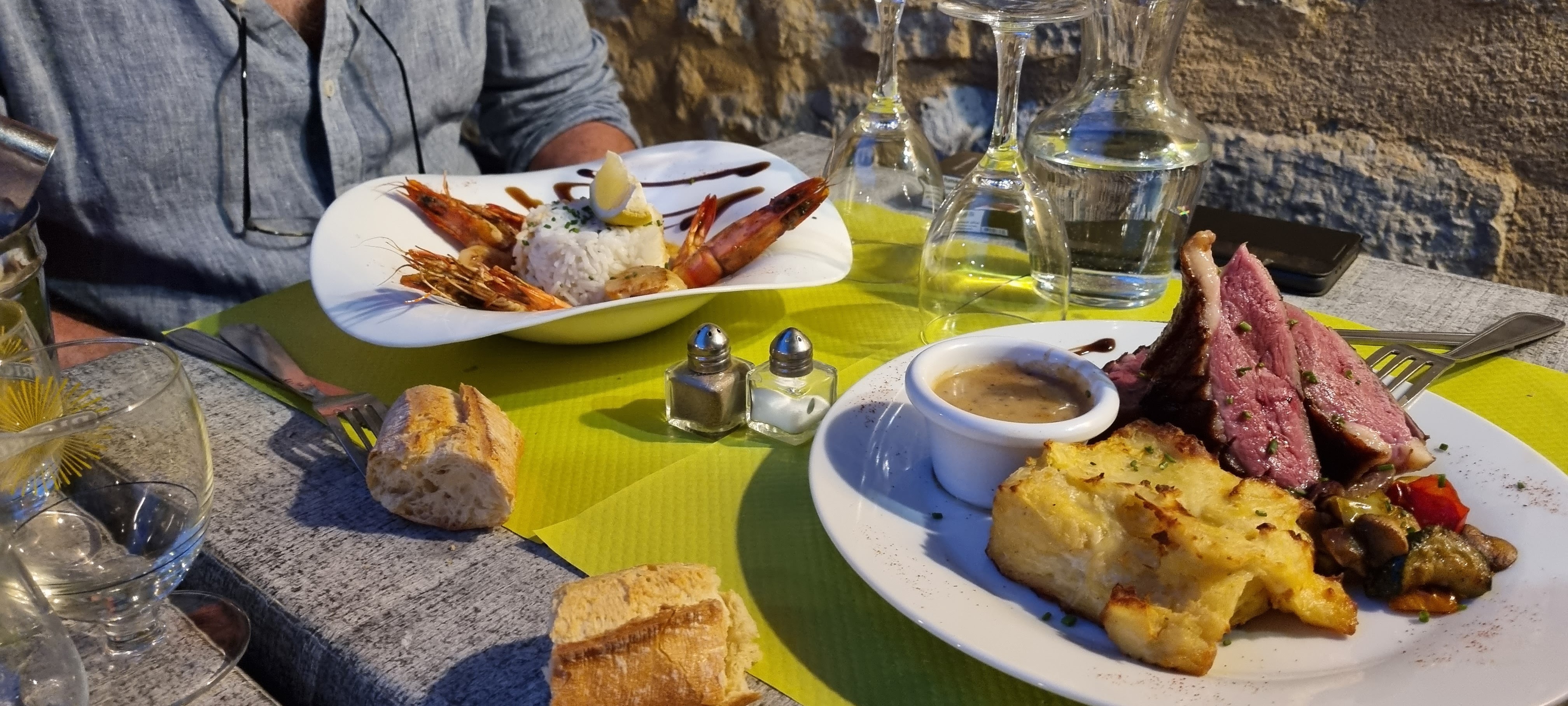 Un dîner en extérieur dans une charmante petite courette au cadre romantique en pierres d'époque. Un menu varié -mais pas trop- dont le titre des plats laisse indécis quant au choix à faire. Bref un excellent dîner un soir d'été. Bon accueil et excellents mets. A refaire !