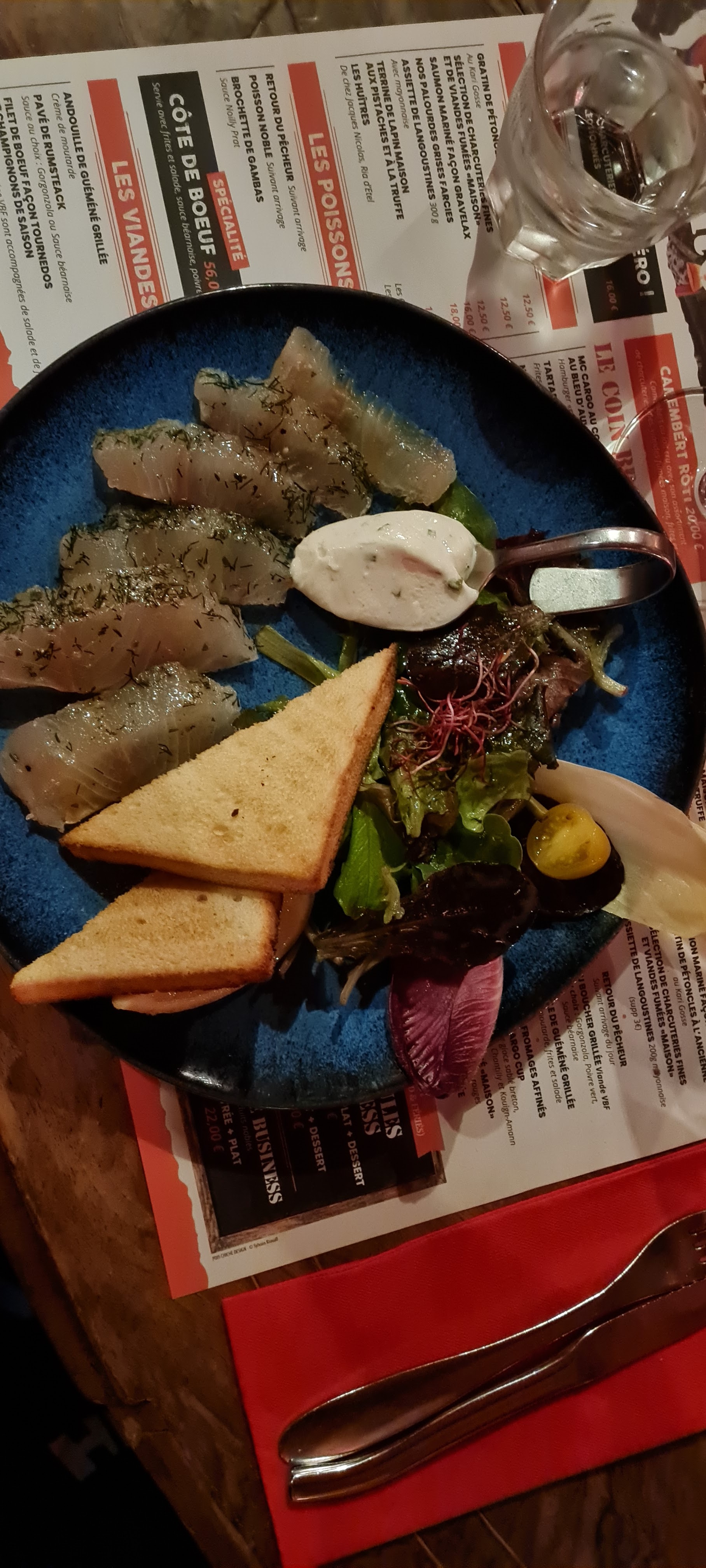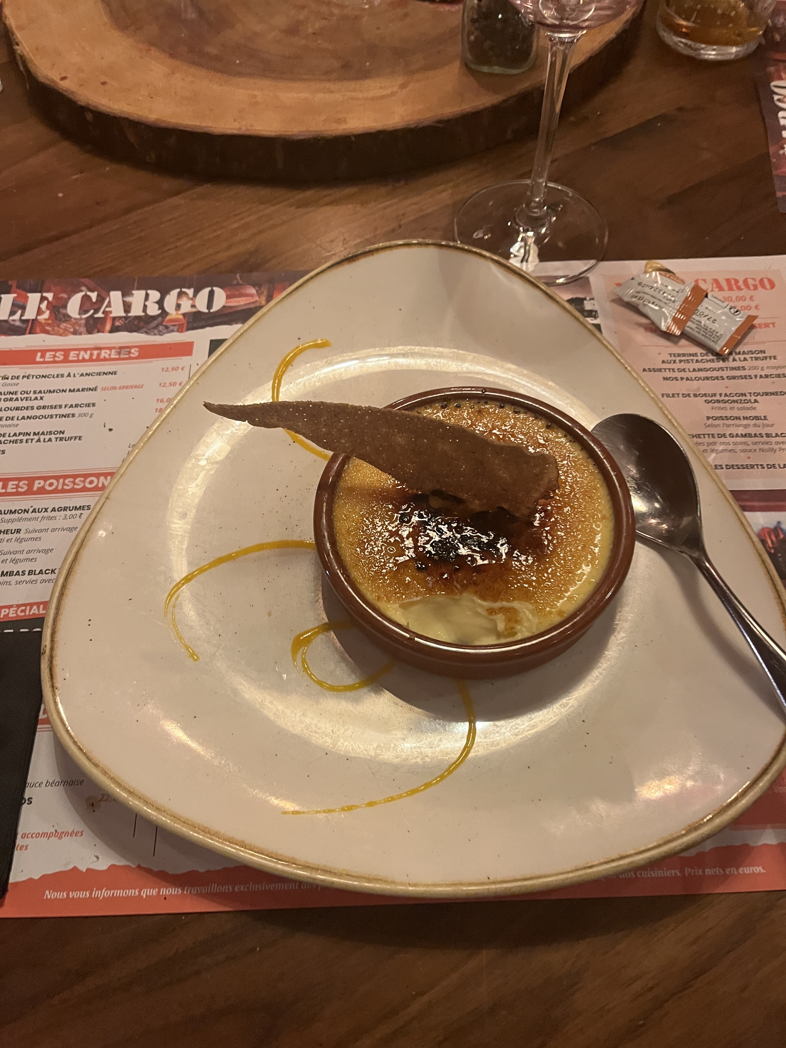 Le temps n'était pas propice à profiter de la terrasse devant le port. Tanpis nous avons profité du décor intérieur je vous laisse aller le découvrir (décor en harmonie avec l'extérieur 😉) Repas : 👍👍👍 Ambiance: 👍👍👍 Service : 👍👍👍👍 Patron: 👍👍👍 Bref, allez-y ! J'y suis retournée : déçue par les plats de poisson (St Jacques et cabillaud): un goût de pas frais !