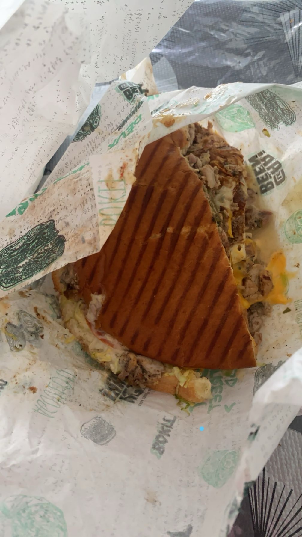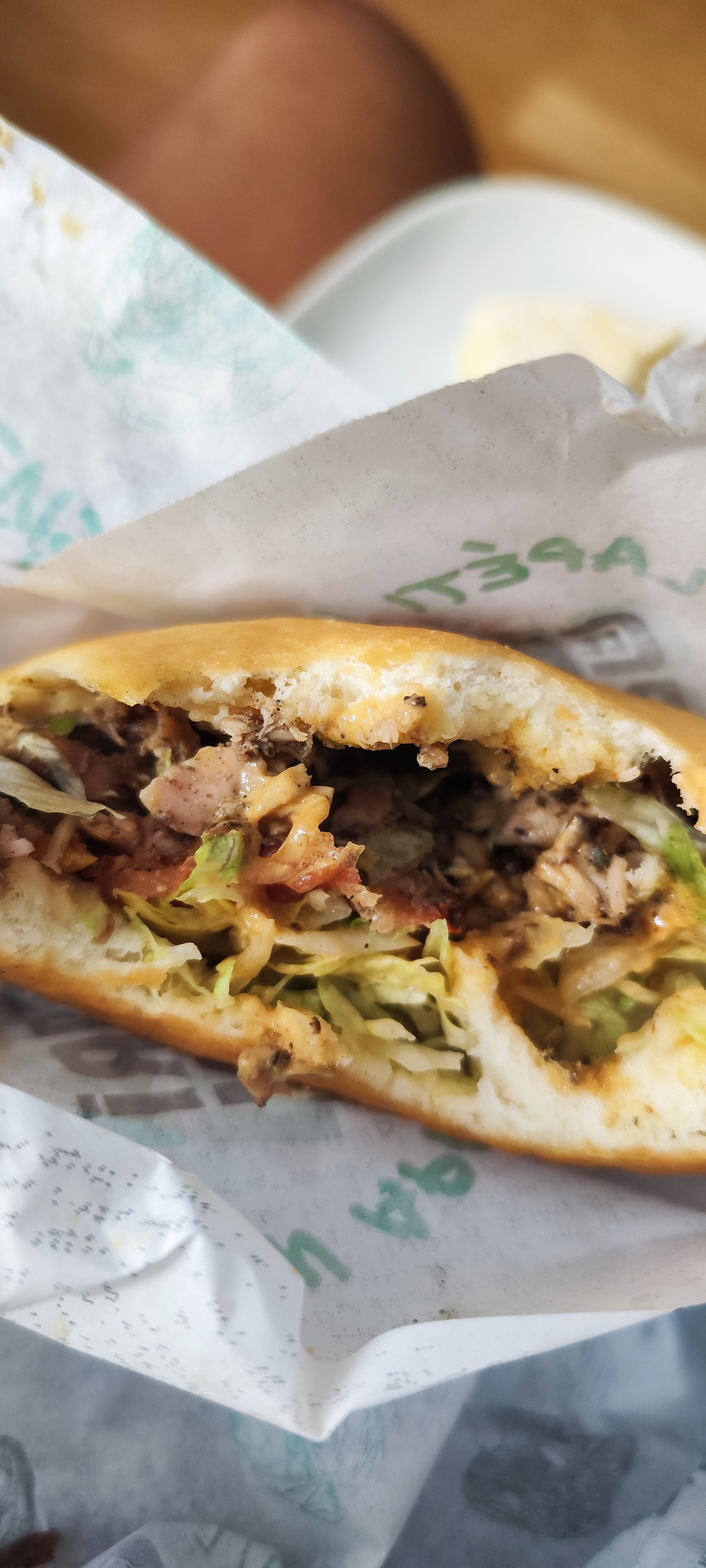 Je ne m’attendais absolument pas à déballer un agoulou dans cet état, j’ai été commandé et j’ai récupéré sur place, aucune secouce durant le trajet pour que je puisse rentrer chez moi, un « agoulou » c’est à peine si on peut le tenir pour le manger, toute la garniture déborde du pain, vraiment pas agréable à manger. Rien avoir avec l’agoulou des Antilles, le poulet quant à lui est découpé grossièrement, des gros morceaux de poulet qui rend l’agoulou encore moins agréable à manger. Et pour finir, tellement de sauce que bref