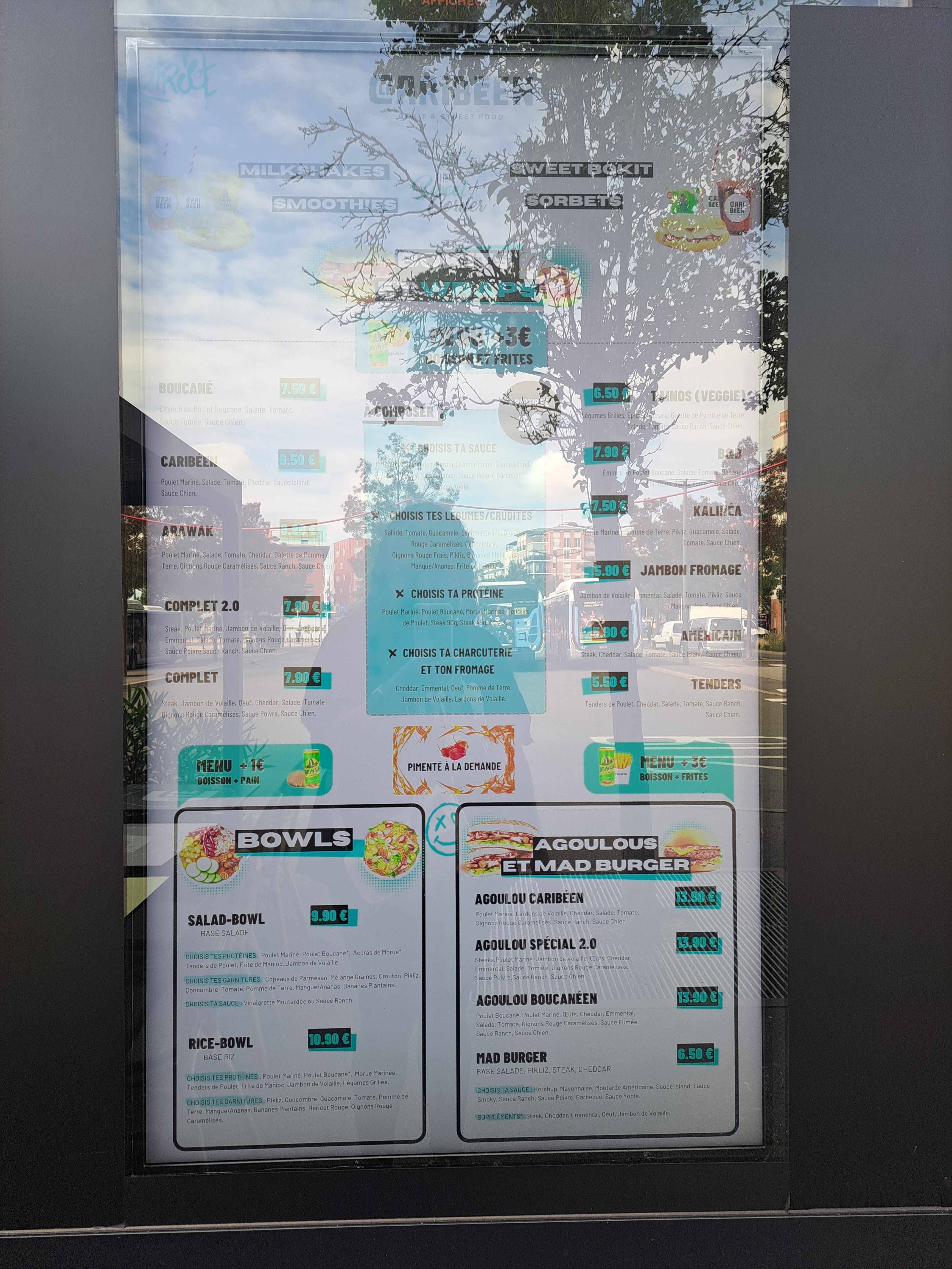 Ravie d'avoir un lieu où l'on peut retrouver des spécialités street food antillaises. Le personnel est agréable et disponible dès l'arrivée pour vous conseiller sur votre choix. Très peu d'attente malgré l'heure de pointe. Les agoulous sont très bon et très copieux! Les frites de patates douces un délice. Le prix reste correct pour la quantité et la qualité servi. Mention spéciale pour la décoration simple et jolie. Gros point négatif pour le son de la télé qui annonce aux clients quand leur commande est en cours de préparation puis prêtes. Nous reviendrons avec plaisir mais à emporter!