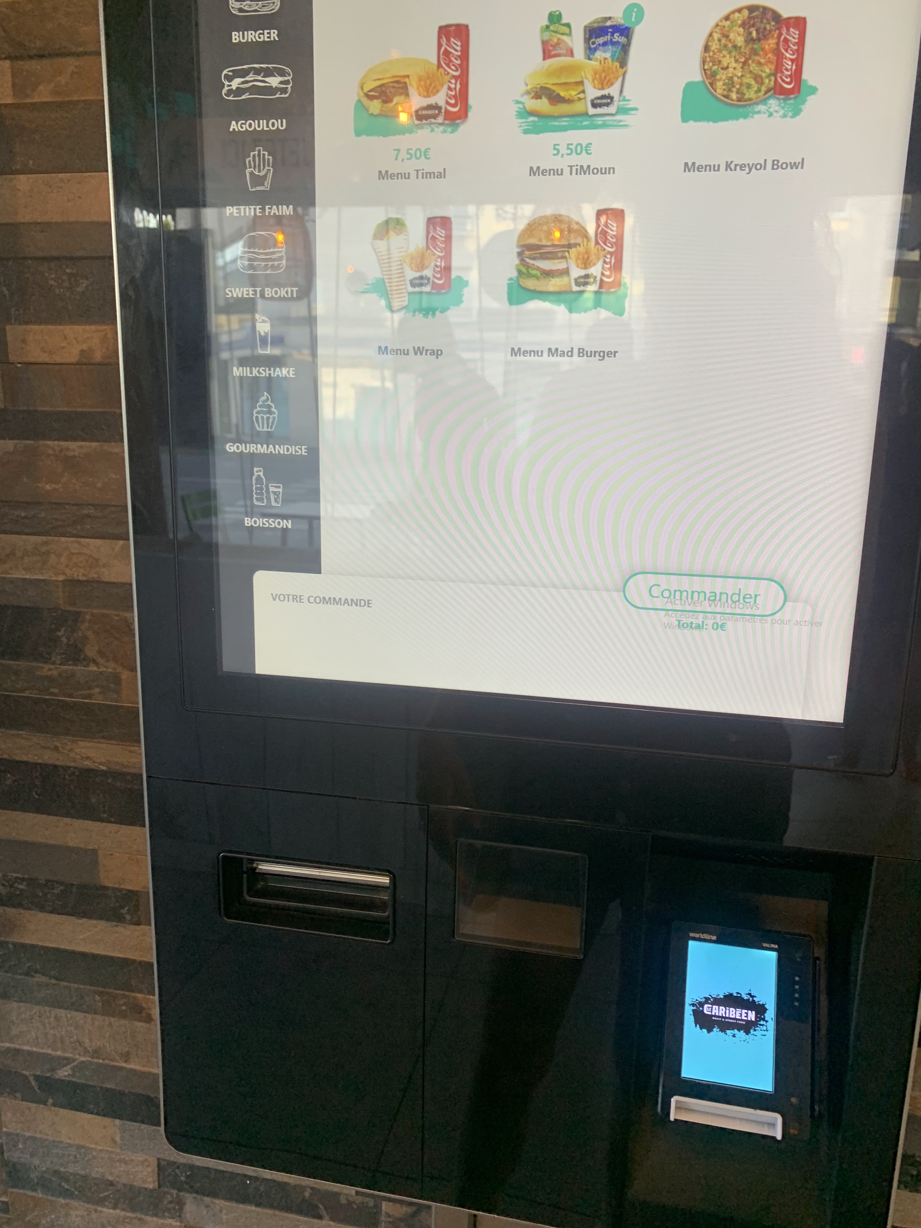 Les bornes du restaurant sont bien conçue avec possibilité de voir le détail des plats, les plats qui revisitent les classiques antillais sont très bon et le patron est super sympa