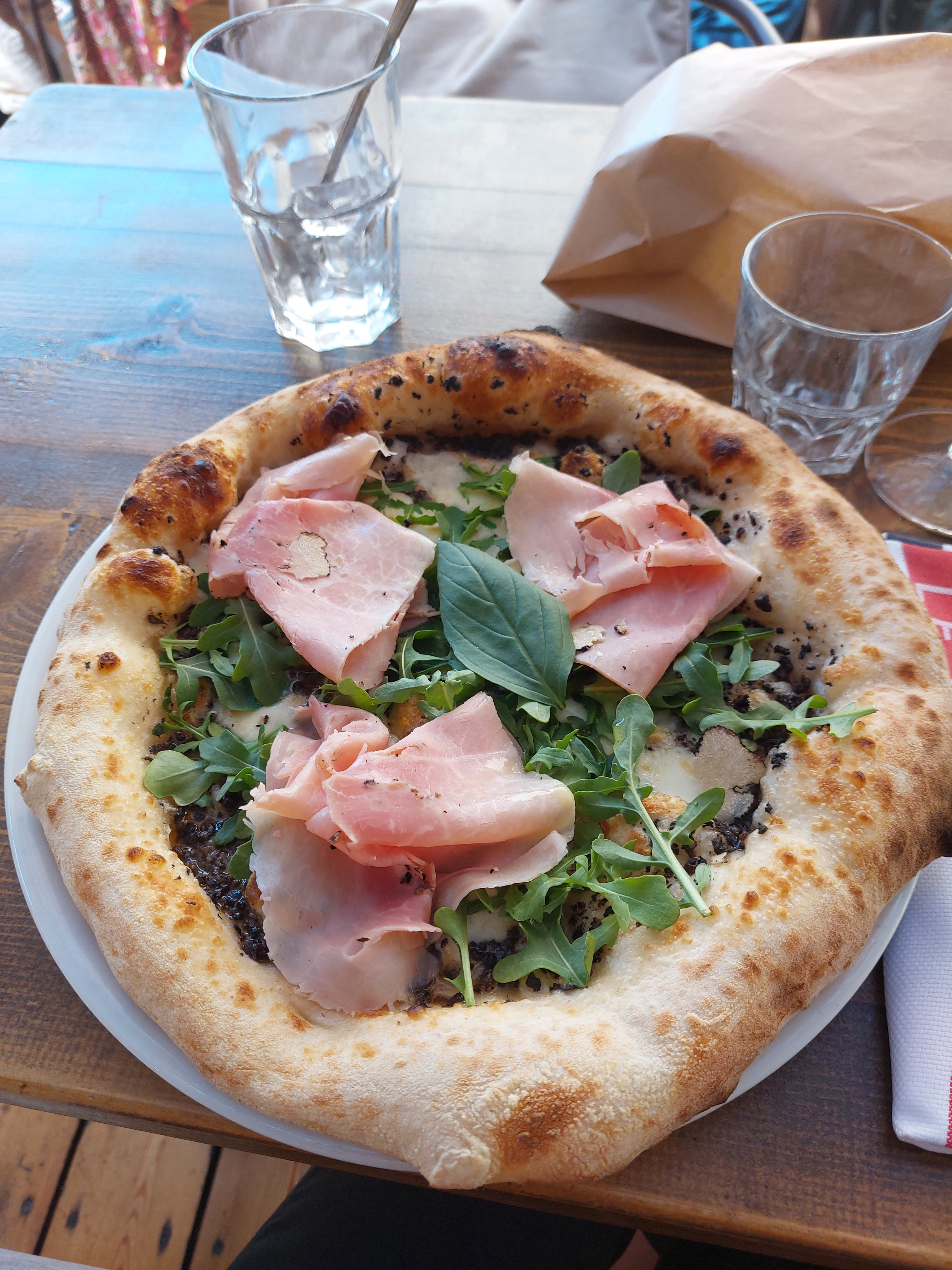 Si seulement le repas pouvait être aussi bon que le resto est beau car les pizzas sont chère pour ce qu’il y a dessus et les raviols truffes gambas 🥴2 gambas carbonisés posés sur des raviols qui ont pris l’odeur du brulé j’ai jamais eu le goût de truffe en bouche pour un plat à 39€ et le tout envahi de mouches tout le repas