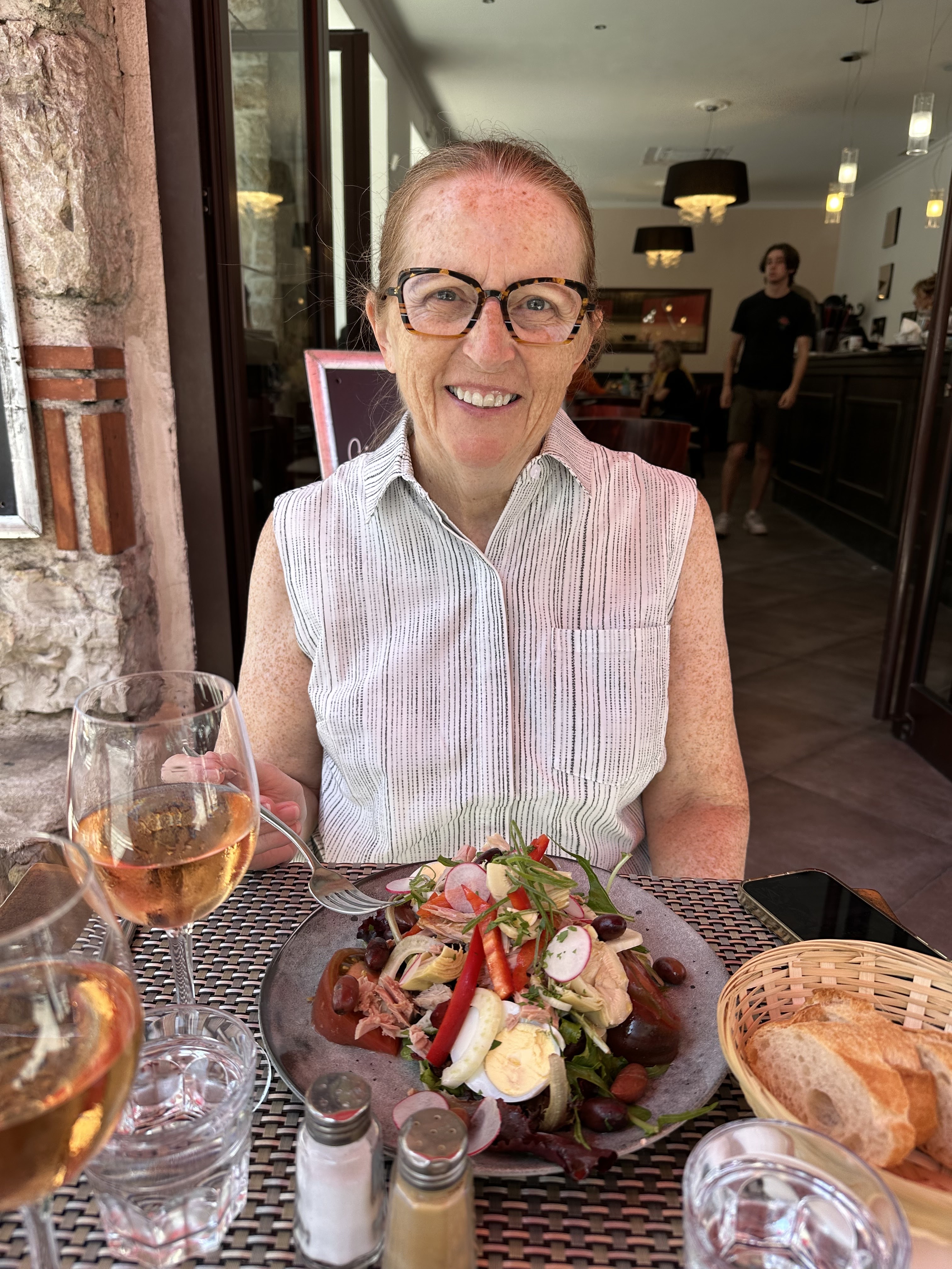 Nous avons déjeuné deux salades (Nicoise et une salade au poulet), toutes deux excellentes avec des ingrédients frais. Service amical rapide.