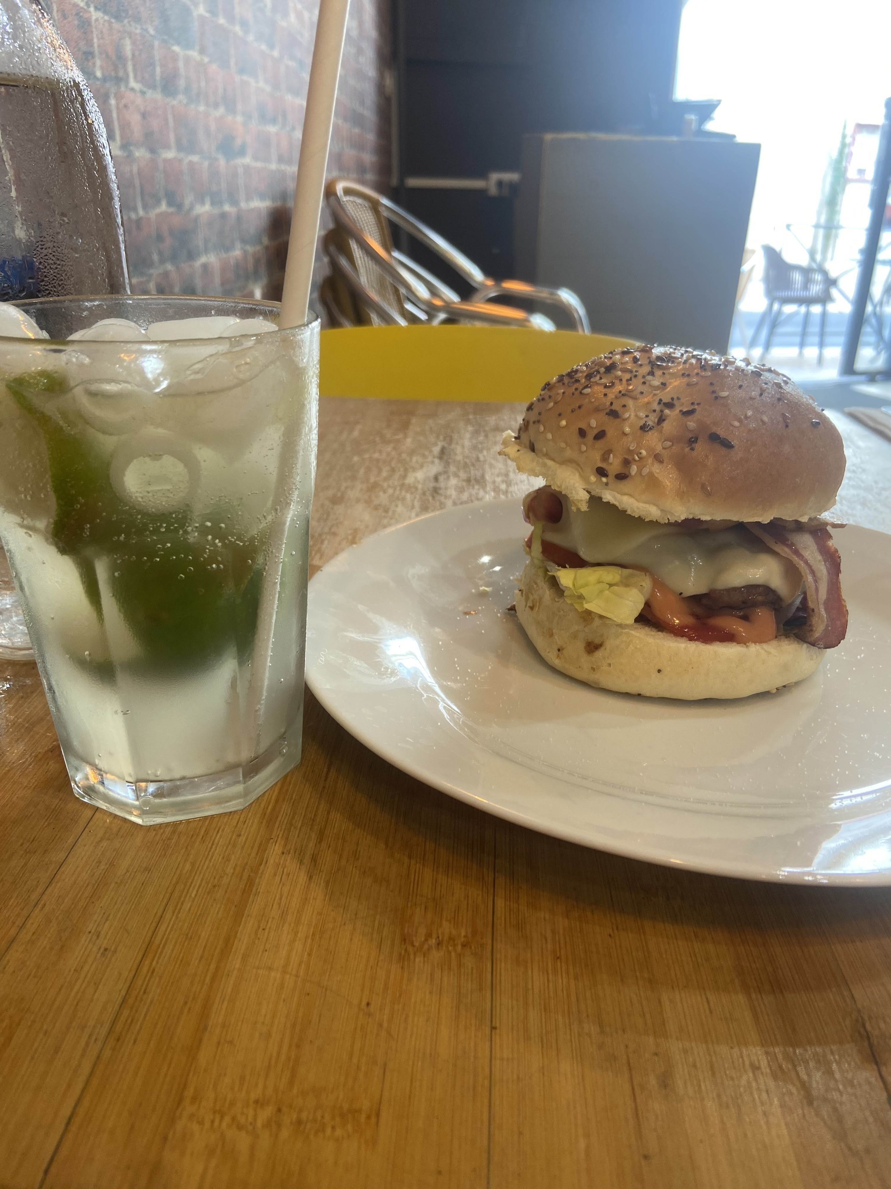Conseillé par un ami, je suis déçu du burger que j’ai choisi (pulled meat 🥩 ) car la viande était sèche et le pain était dure s’émiettait. Cela dit, j’ai pu goûter le cheeseburger qui était bien meilleur. 🍔 Les frites maison valent le coup et le fromage par dessus est bon 🧀 Le service était cordiale même si nous avons un peu attendu nos plats. L’ambiance est correcte bien qu’il y ait beaucoup de passage dans la rue.