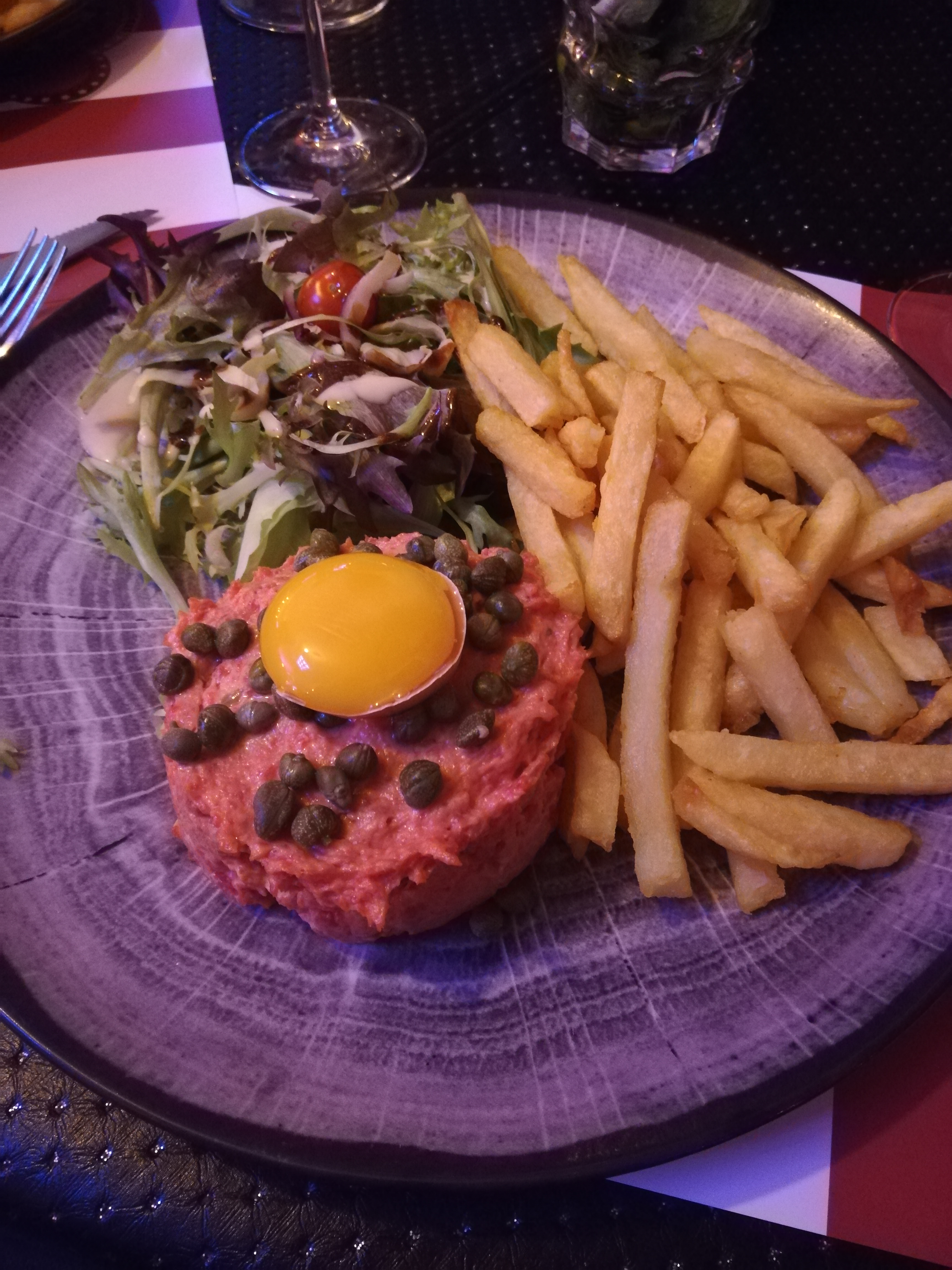 nous avons très bien mangé , la viande est excellente !! par contre manque de convivialité ! personnel un peu coincé qui veut bien faire !! le plat nous a été amené alors que nous étions en train de prendre l apéritif ! pas de proposition de boisson pour prendre avec le plat !!!