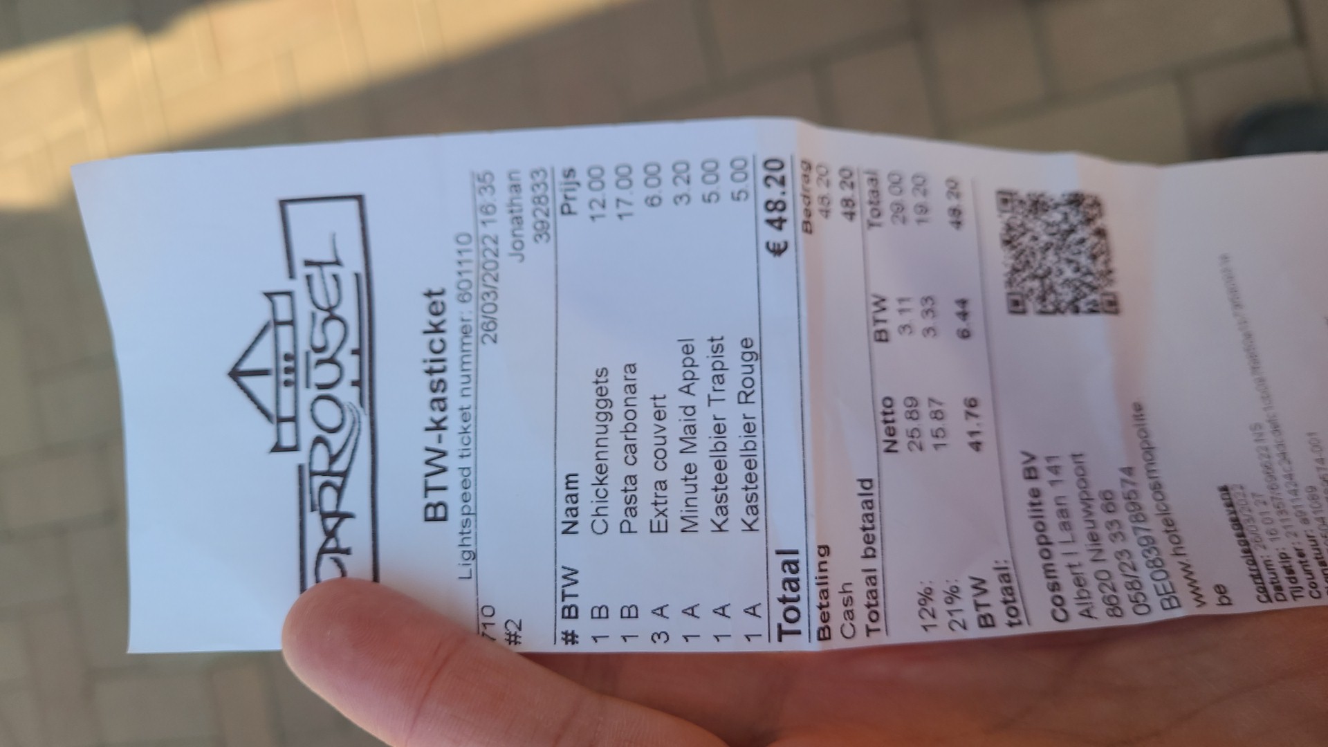Je faisais un déplacement de Lille à Dunkerque et je cherchais un restaurants sur mon trajet. Il était 13h20 et je me vois remercier en ce qui concerne un établissement proche du carrousel car les cuisines viennent de fermer (même pour un couvert). Je reprend donc le volant et moins de 200 mètres plus loin me voilà arrivé au carrousel. Contrairement à l'établissement précédent je suis très bien accueilli avec sourir et amabilité. On m'a proposé le choix de manger à l'extérieur ou à l'intérieur. la table qui m'a été présenté à été n'ettoyer juste avant que je l'occupe. Très rapidement on m'a proposé la carte et le choix sur l'ardoise du jour tout en m'expliquant les plats. Ma boisson m'a été servi accompagné de gâteau apéritif. J'ai eu le temps de faire mon choix et dans un délai plus que convenable (malgré le nombre important de couverts) ma commande a été prise . Je me suis régalé avec mon plat. La carte des desserts m'a été présentée et la tout me faisait envi. Comme j'avais pris de bonnes résolutions pour éviter de prendre du poids c'est Avec regret que je n'ai rien pris. Ce qui est sur c'est que je reviendrai pour la qualité du service et de la cuisine. Pour finir félicitation au deux personnes qui assurent le service en salle car elles sont très professionnelles et compétente. J'y retournerai sur