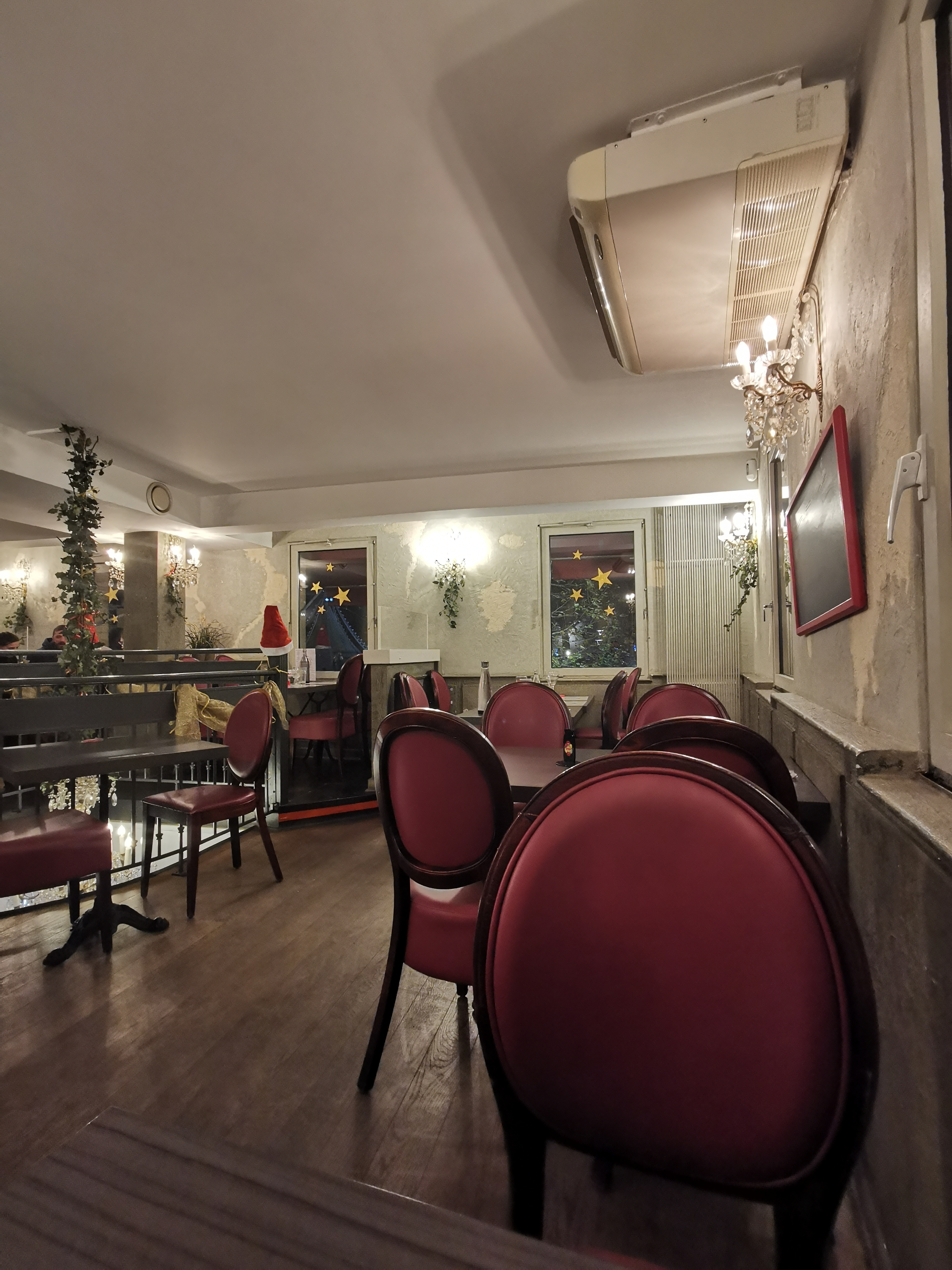 Carpe dieu tel est le nom du Café. Une terrasse extérieure de grande taille mais l hiver est là. Intérieur assez old fashionned Décoration à revoir pour l agrément des yeux.