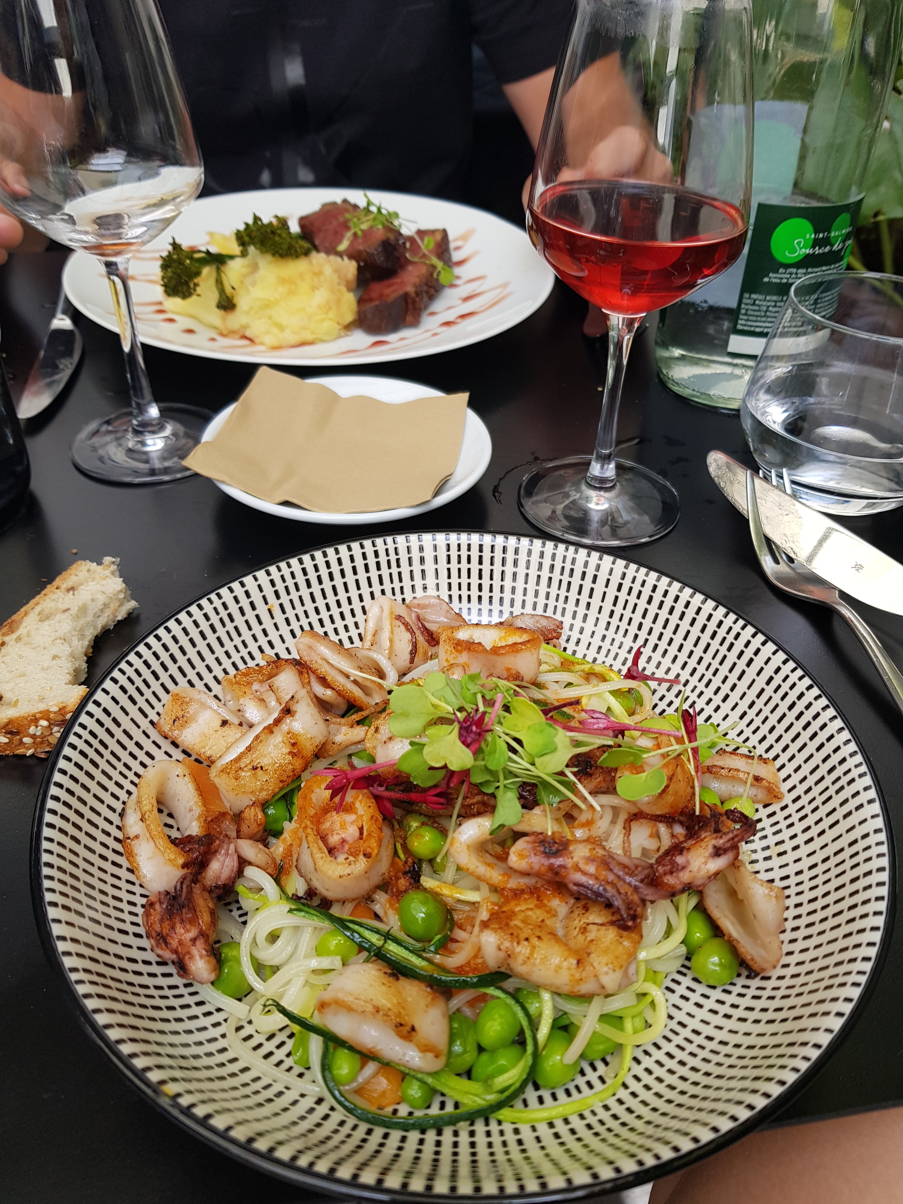 Bonne table dans un cadre sympa. Le petit plus les tables sont espacées il est agréable de ne pas manger avec nos voisins sur notre table comme dans beaucoup de restaurant aujourd hui. J ai apprécié aussi le fait de goûter le vin au verre avant qu'il soit servi pour le valider. Si il y a un bémol, le service un peu lent mais ça laisse le temps de profitez du moment le soir .