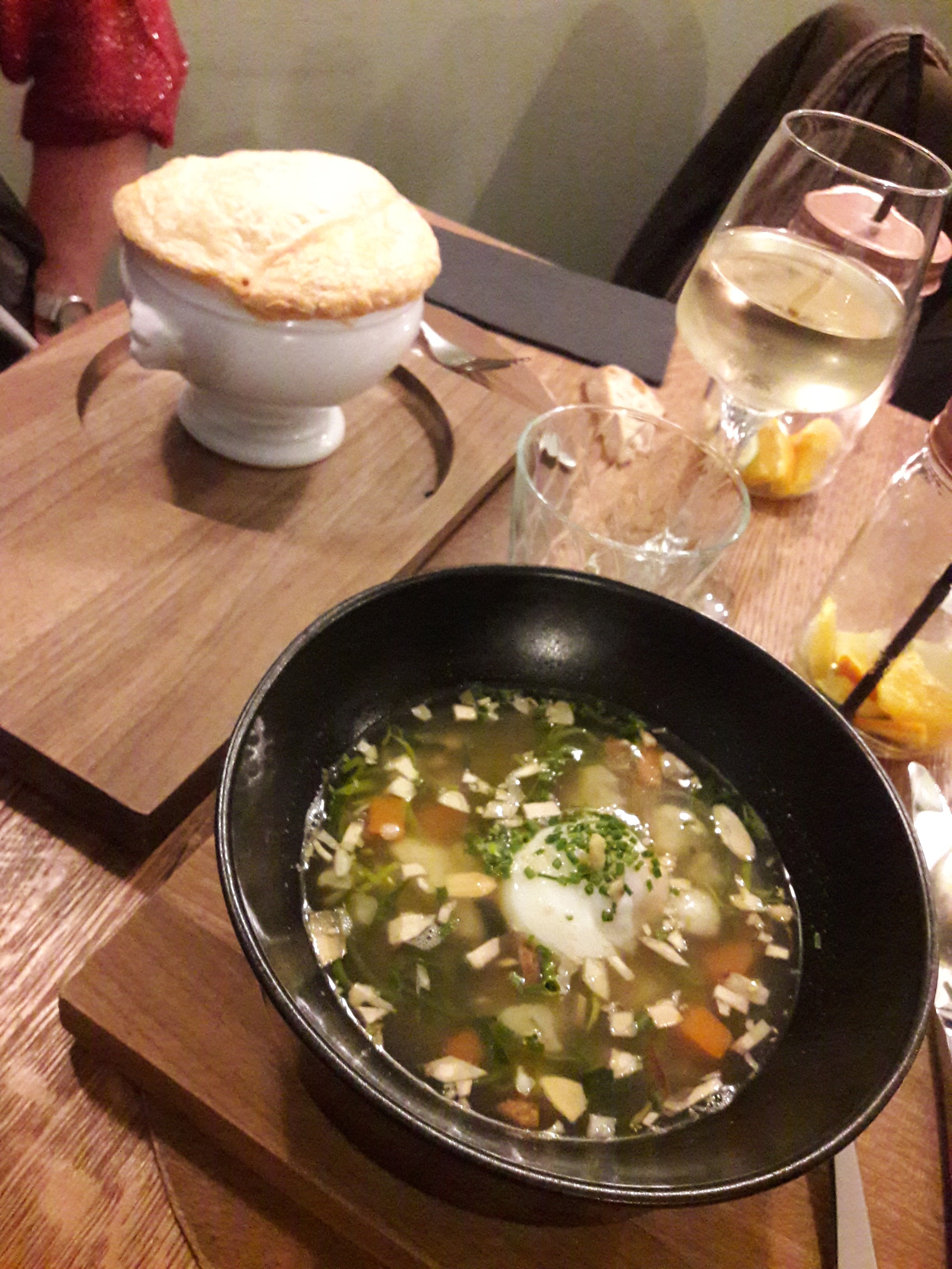 Pas mal mais globalement trop gras. De la crème dans la soupe, la viande nappée de sauce à la crème, de la crème dans le dessert. On sort de là un peu lourd !