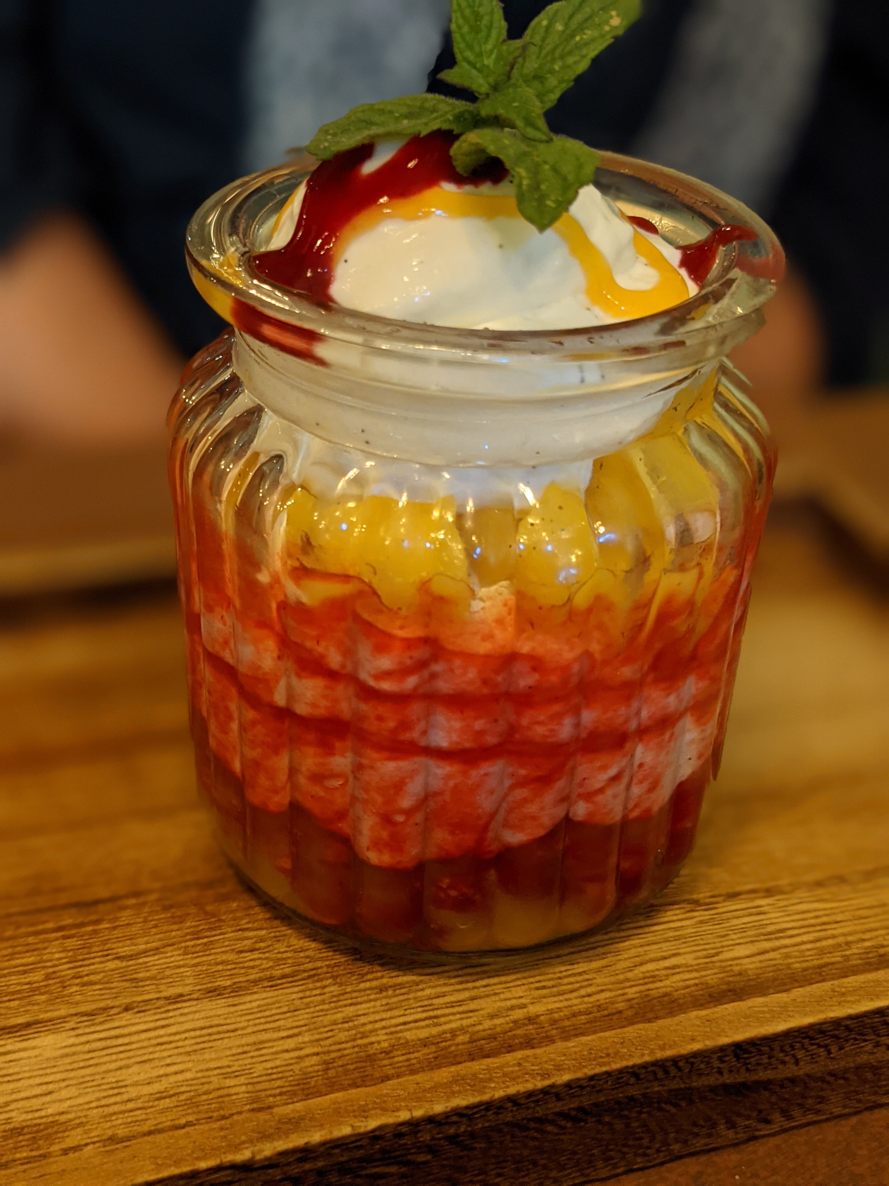 Déjà c'est super bon et très mignon mais en plus le service est une véritable masterclass, avec une élégance printanière et des accoutrements originaux. On respire, parce que bon les costumes là ça va bien. C'est un 5/5.