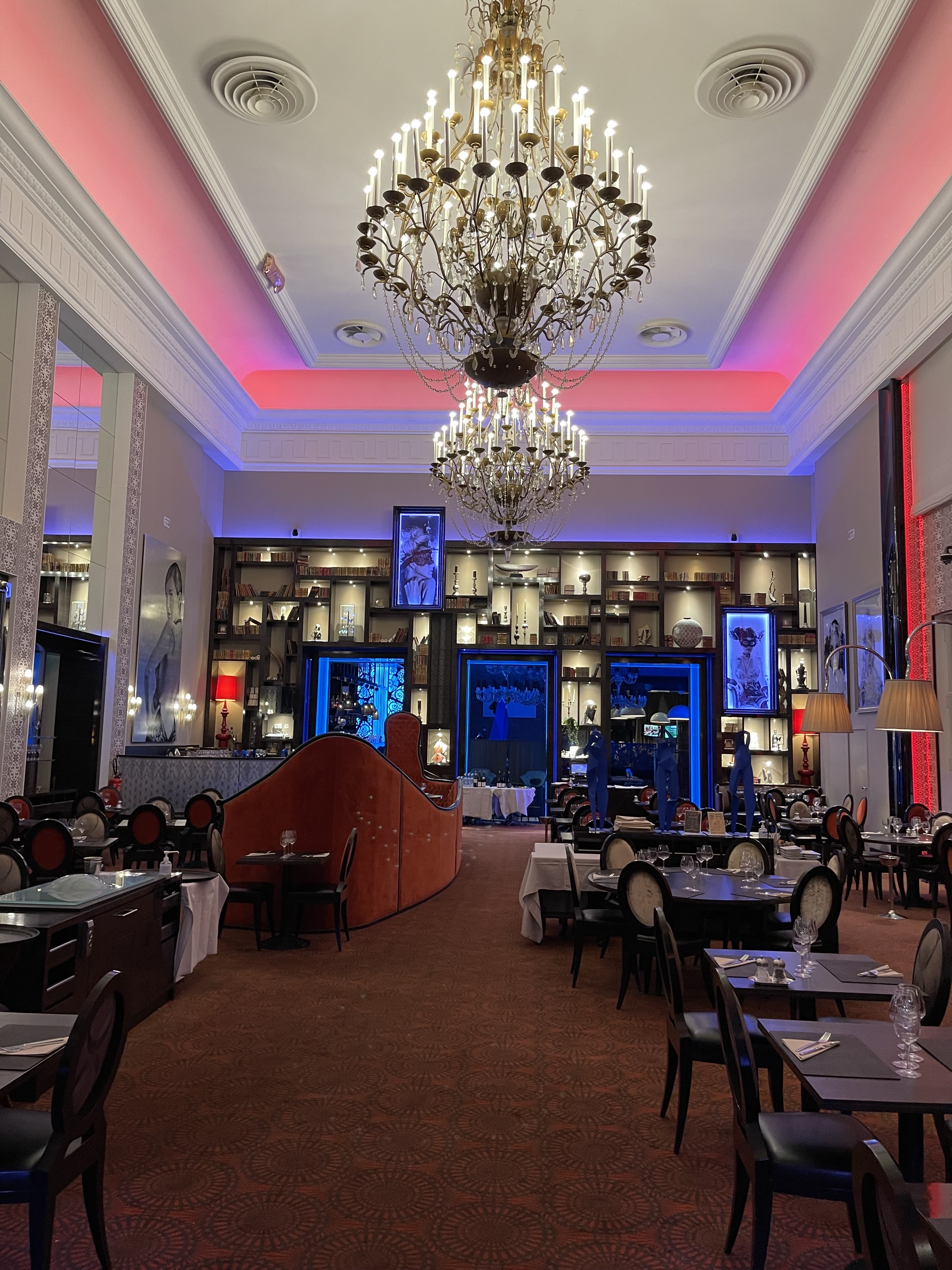 Une salle magnifique avec de très hauts plafonds, la déco est faite avec goût en mélangeant le moderne et l’ancien de l’architecture.Le personnel est très aimable et souriant c’est appréciable. Nous avons passé une très belle soirée , de l’apéro au dessert on a été conquis par notre repas, bien dressé et très bon. Nous avons ensuite passé la soirée au casino. Nous reviendrons sans hésiter.