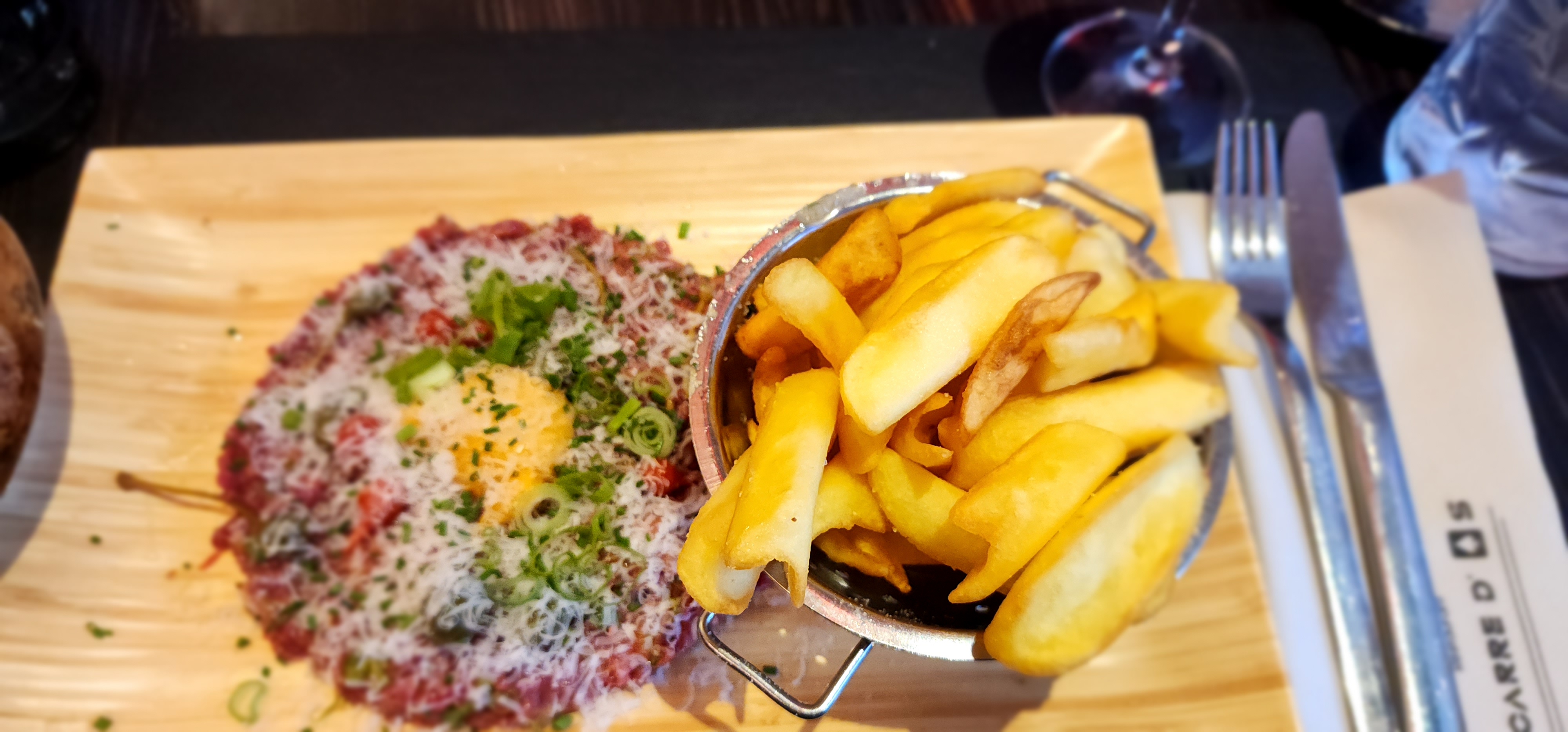 Le carré d'As propose une cuisine de brasserie à la française avec une bonne touche de modernité et de recherche de nouveautés. Pour meilleur exemple: ce burger revisité au saumon et sauce maison dans son pain légèrement citronné ou encore le tartare et son assaisonnement taï... Tout cela dans un environnement tendance, cosy avec une équipe à l' écoute ... Recommandation très très forte