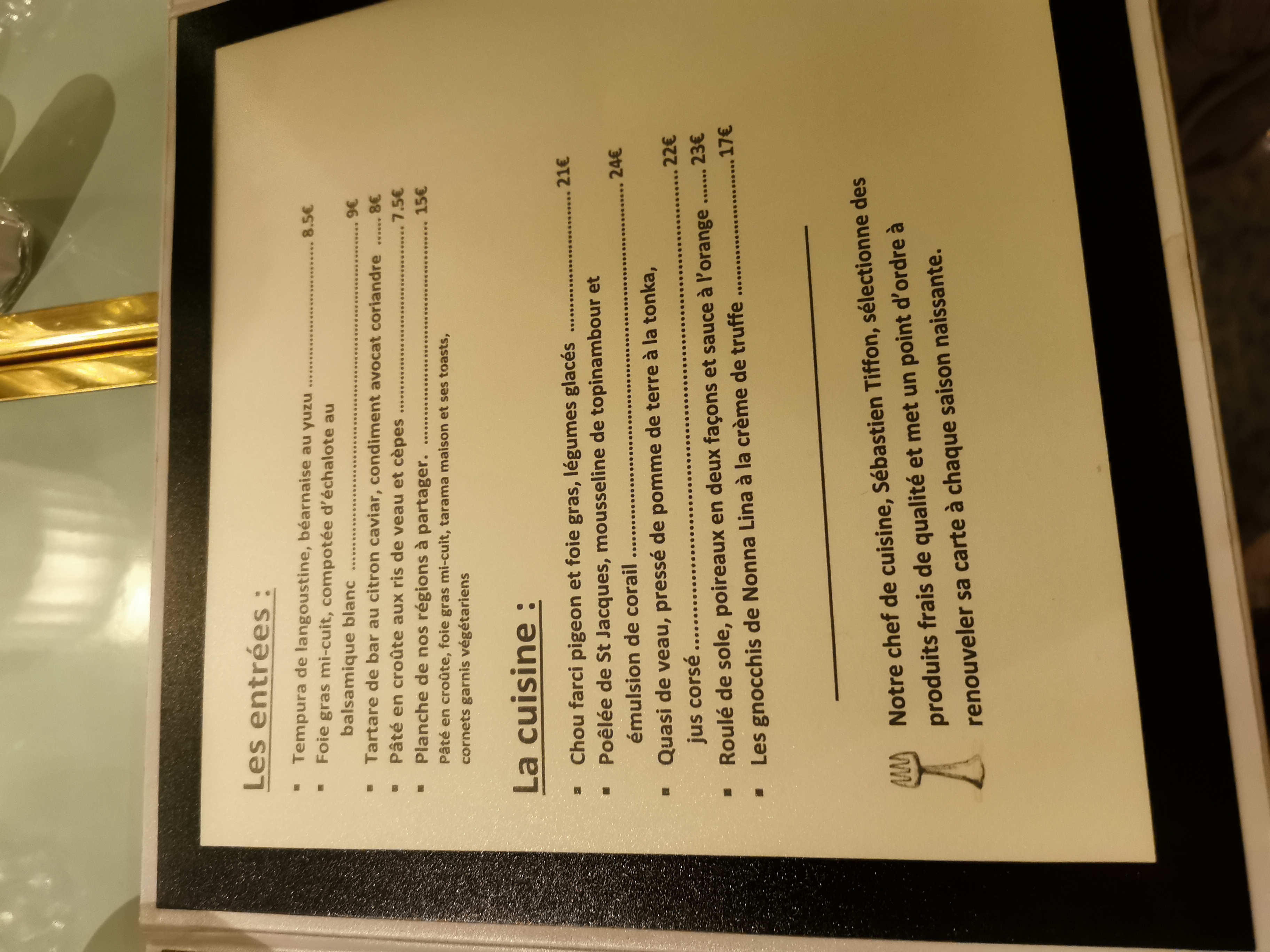 Un pur délice 👌 ... mes papilles en sont encore toutes émoustillées!!! Personnel au top, carte au top, carte des vins au top😊 un cadre très sympa avec une superbe cave à vin . Je recommande vivement cet endroit!!!!