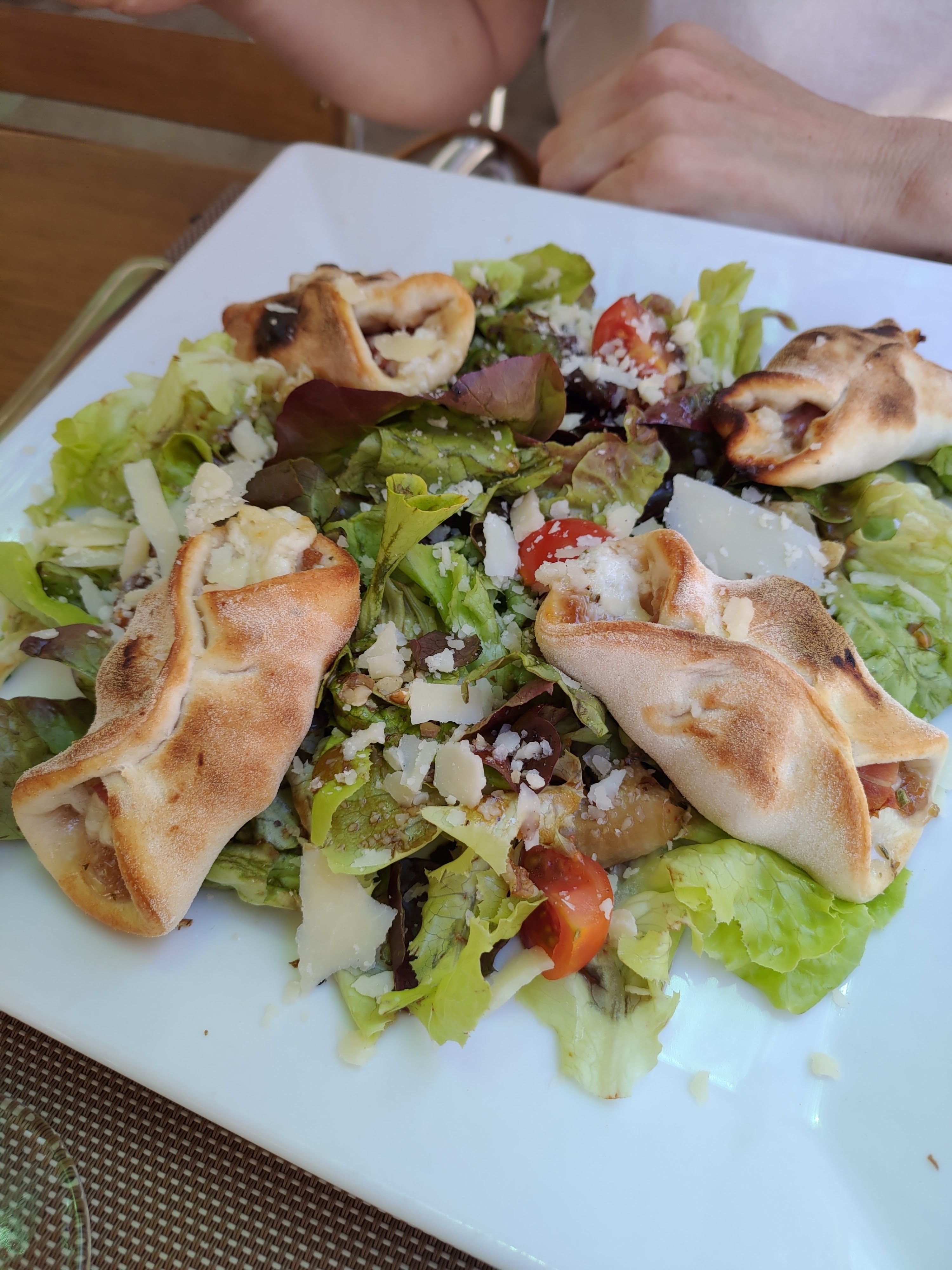 Parfait pour déjeuner après une randonnée dans les Calenche. Salade copieuses et terrasse ombragée