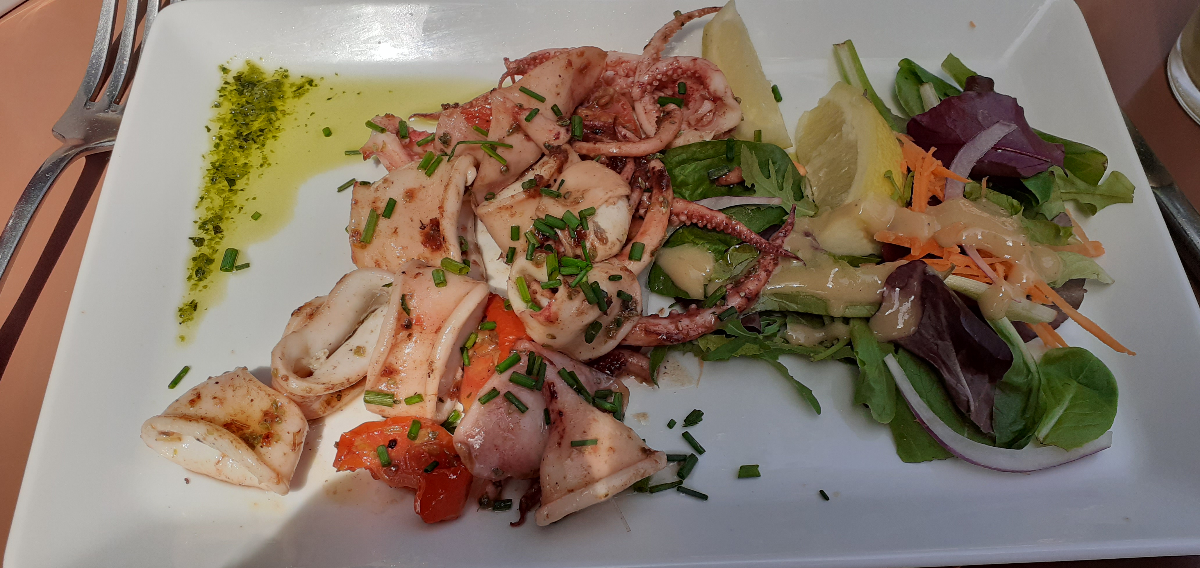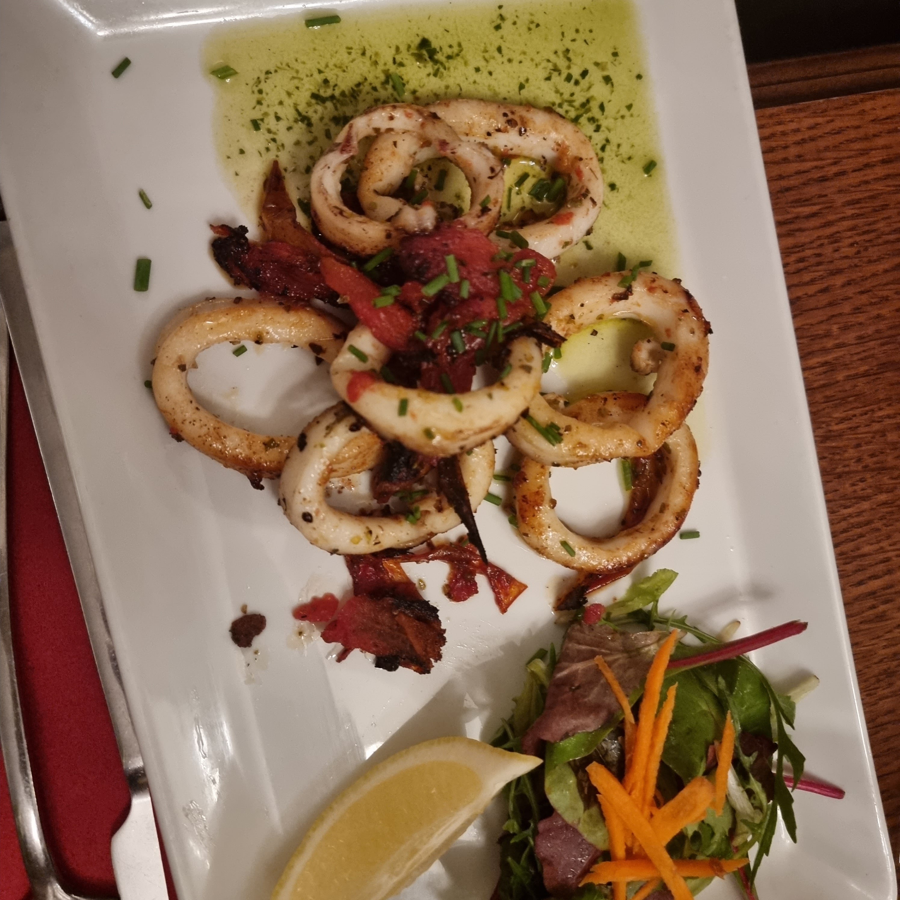 Repas excellent, le calamar sur ces tomates fondues un délice, le pavé de bœuf fondant en bouche un régal et le fondant au chocolat est divin . Quand à la personne qui m'accompagnait, elle a prise un tartare de thon et un tartare coupé au couteau qu'elle a beaucoup appréciée. Juste l'addition un peu salées mais nous nous sommes pas privés. A refaire très prochainement