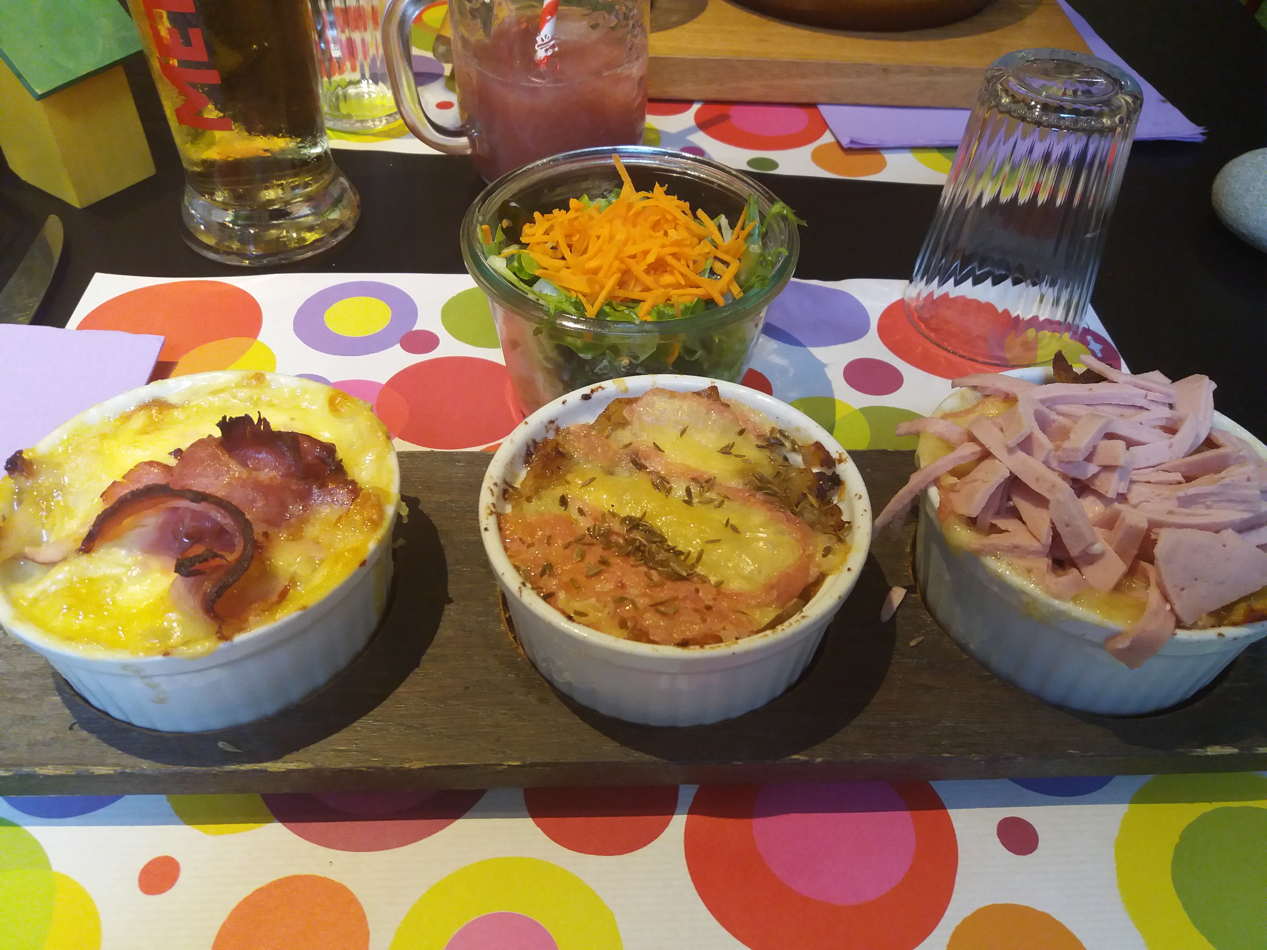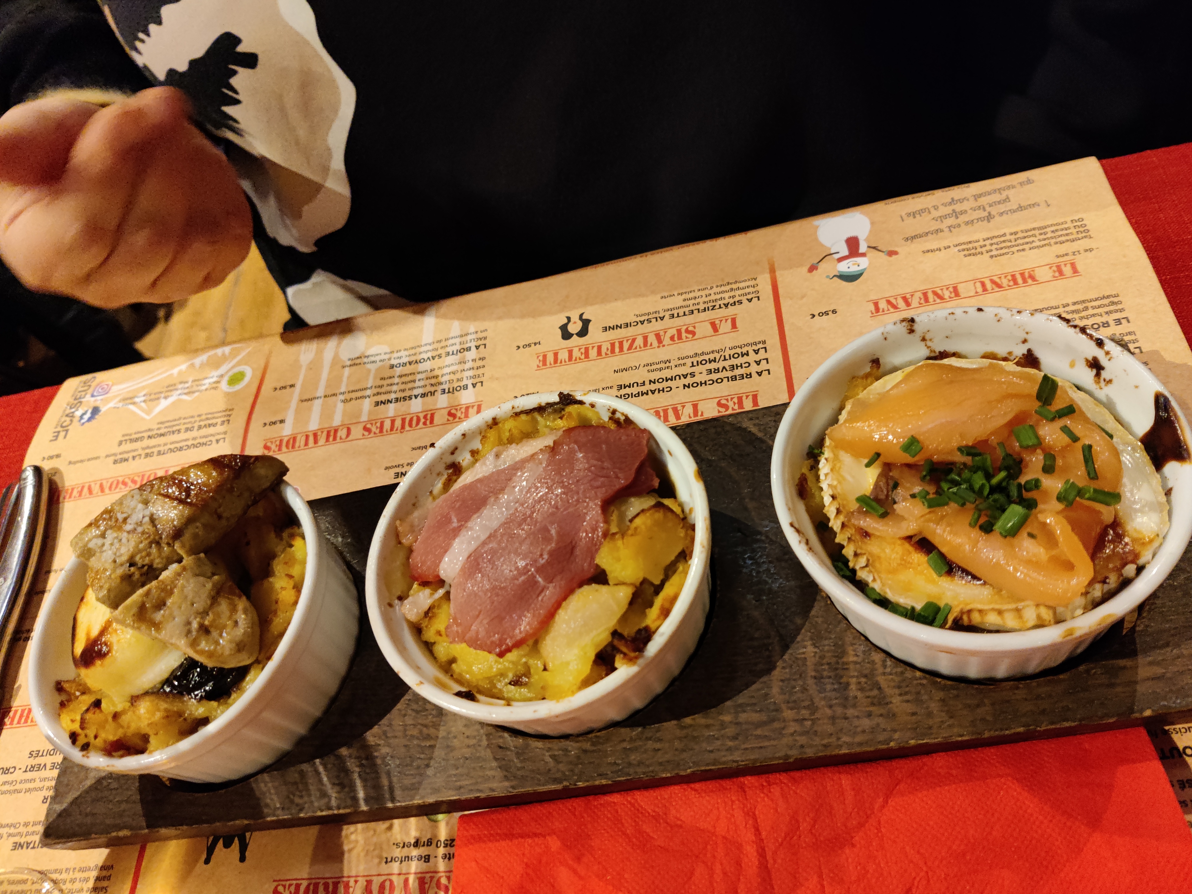 Superbe décoration, accueil chaleureux et plats très bons et copieux. Mieux vaut réserver si on veut avoir une place. J ai pris la tri chic, c est 3 minis tartiflettes avec magret, foie gras, saumon, chevre....un vrai delice et un bon compromis pour tout goûter. On ne vient pas à Thann sans s arrêter au Caseus !!!