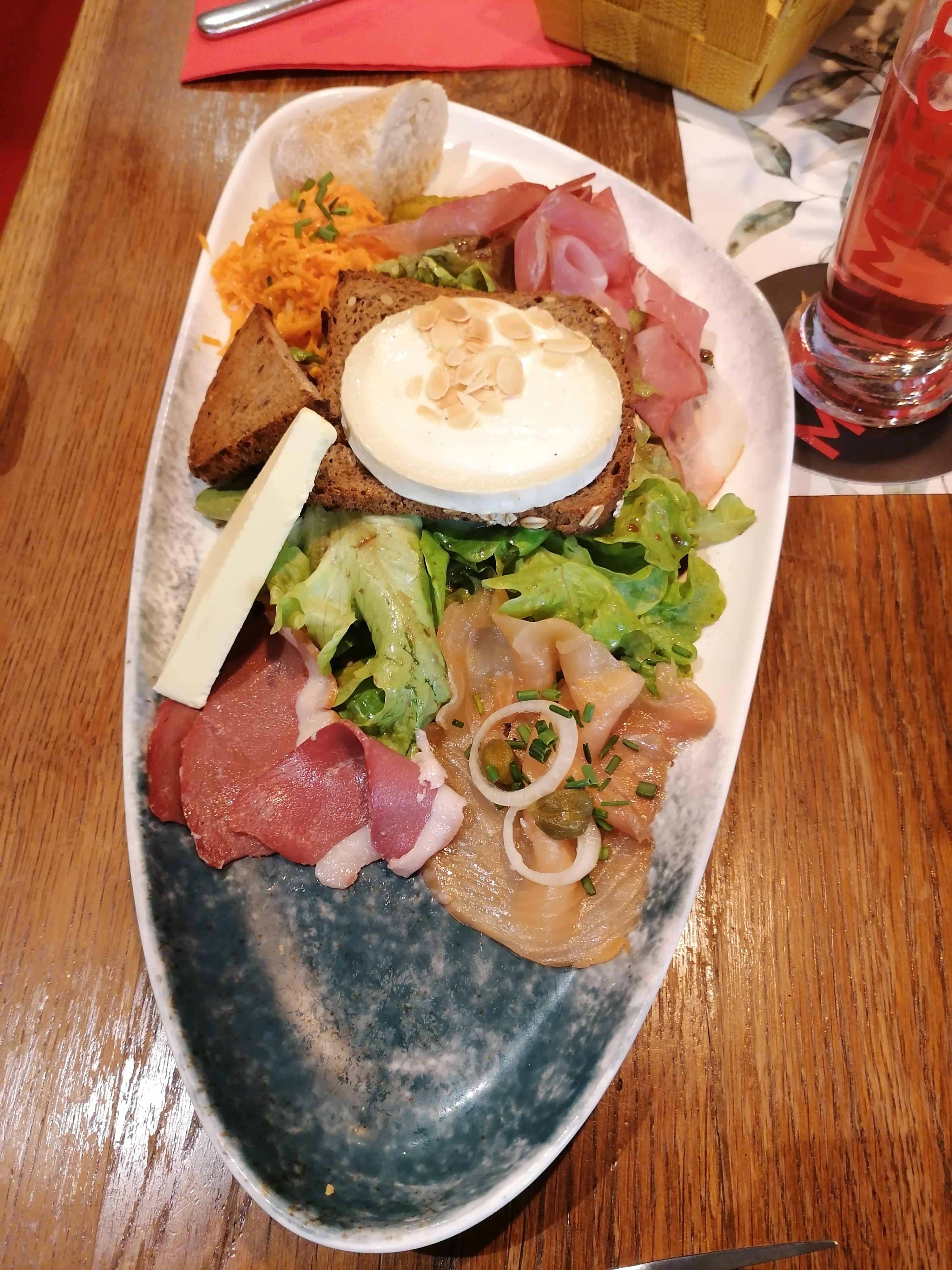 Plateau alsacien pour un peu plus de 16€...carrément excellent ! Servi avec munster chaud pommes de terre et charcuterie fumée! Par contre réservez à l'avance, car c'est tout le temps complet....mais c'est très vite servi par un personnel très sympa. Merci