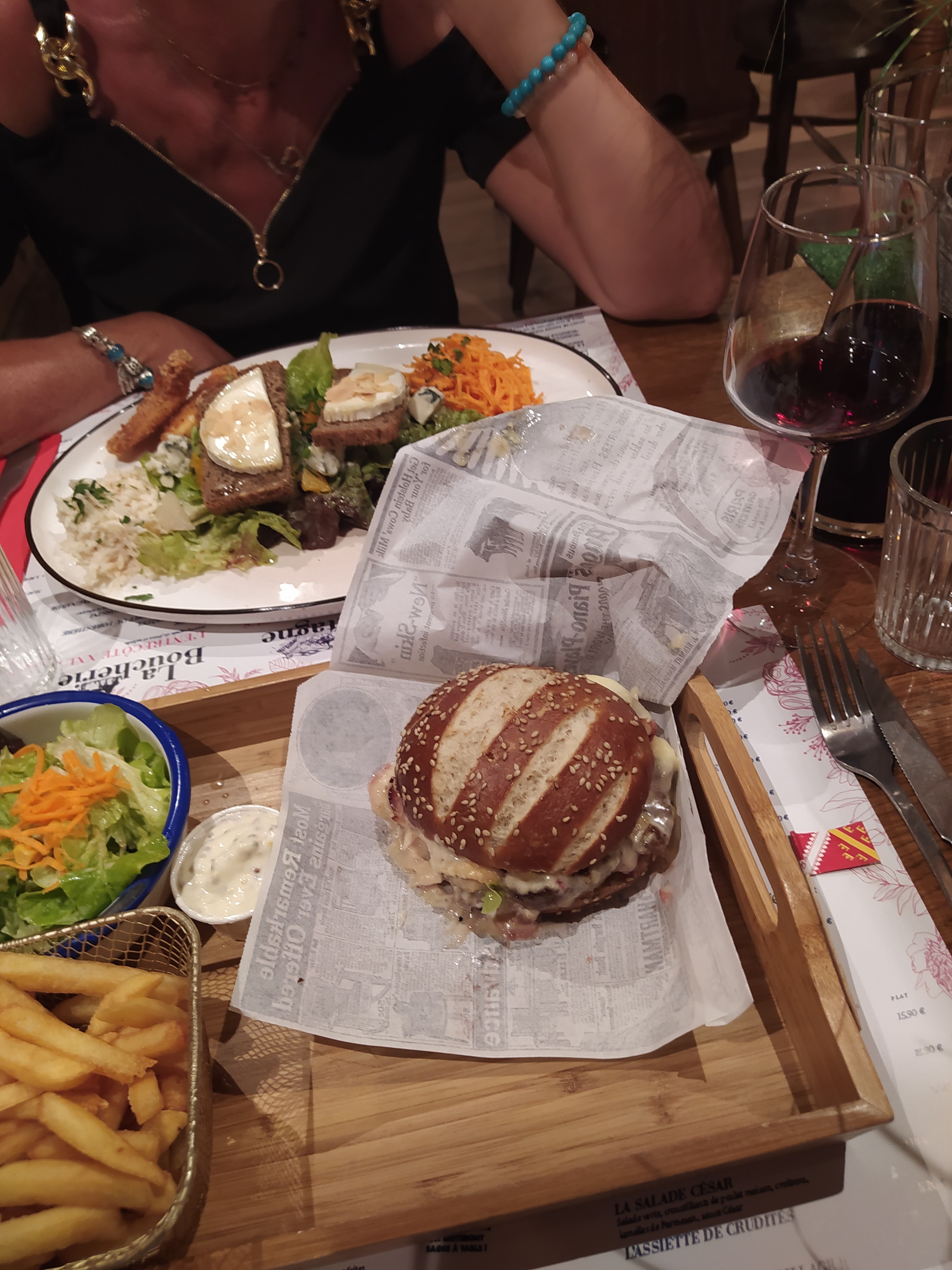 Malheureusement je ne mange pas de fromage, mais l'ambiance, la déco et le burger adapté spécialement sans fromage étaient top. Même si vous n'avez pas besoin d'y aller : faites un tour aux toilettes ! La déco de tout le resto est magnifique. Le personnel est accueillant et chaleureux. Le burger était délicieux !